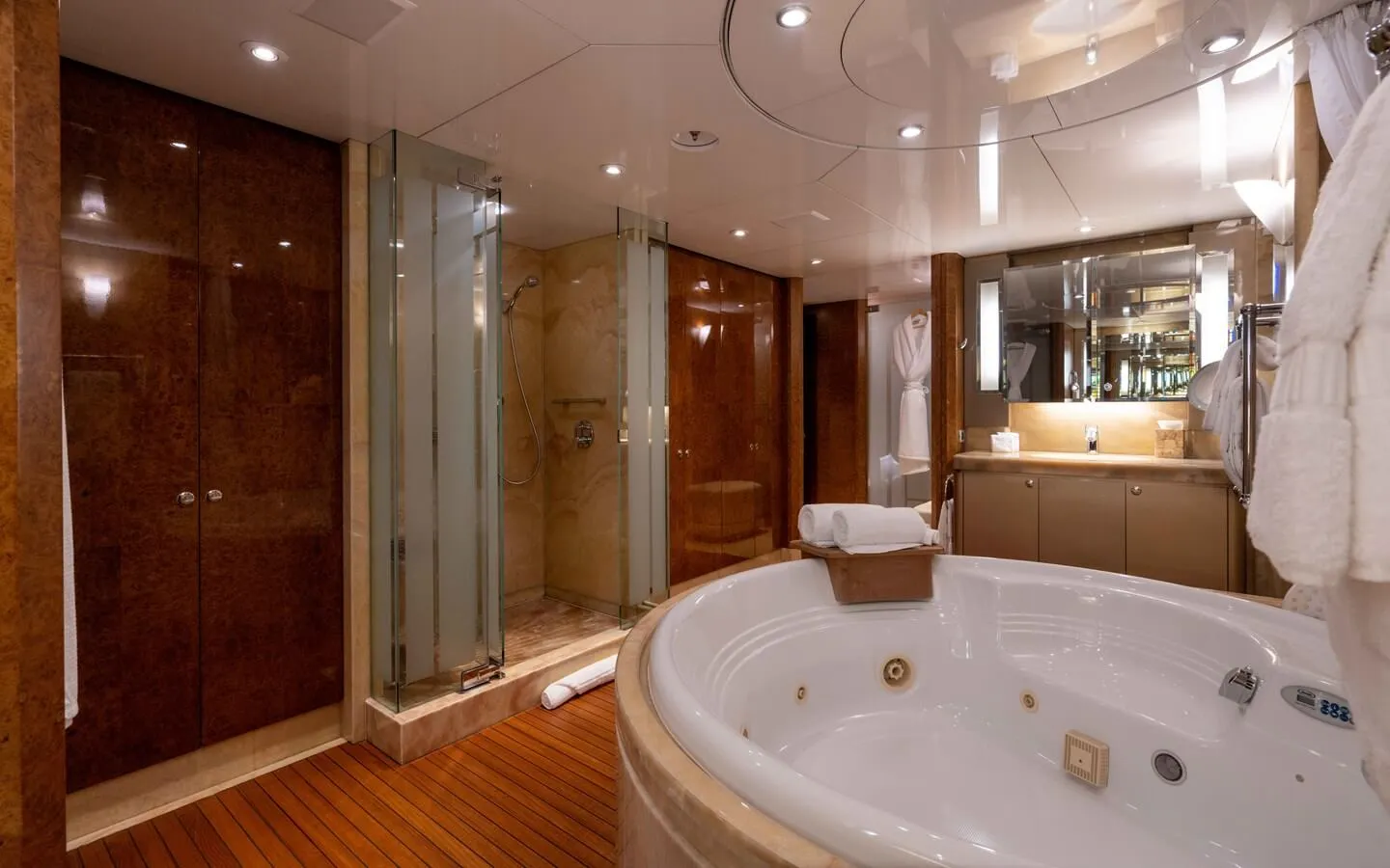 4 Roses has been designed to comfortably accommodate up to 14 guests in 6 suites comprising one VIP cabin. She is also capable of carrying up to 14 crew onboard to ensure a relaxed luxury yacht experience.
