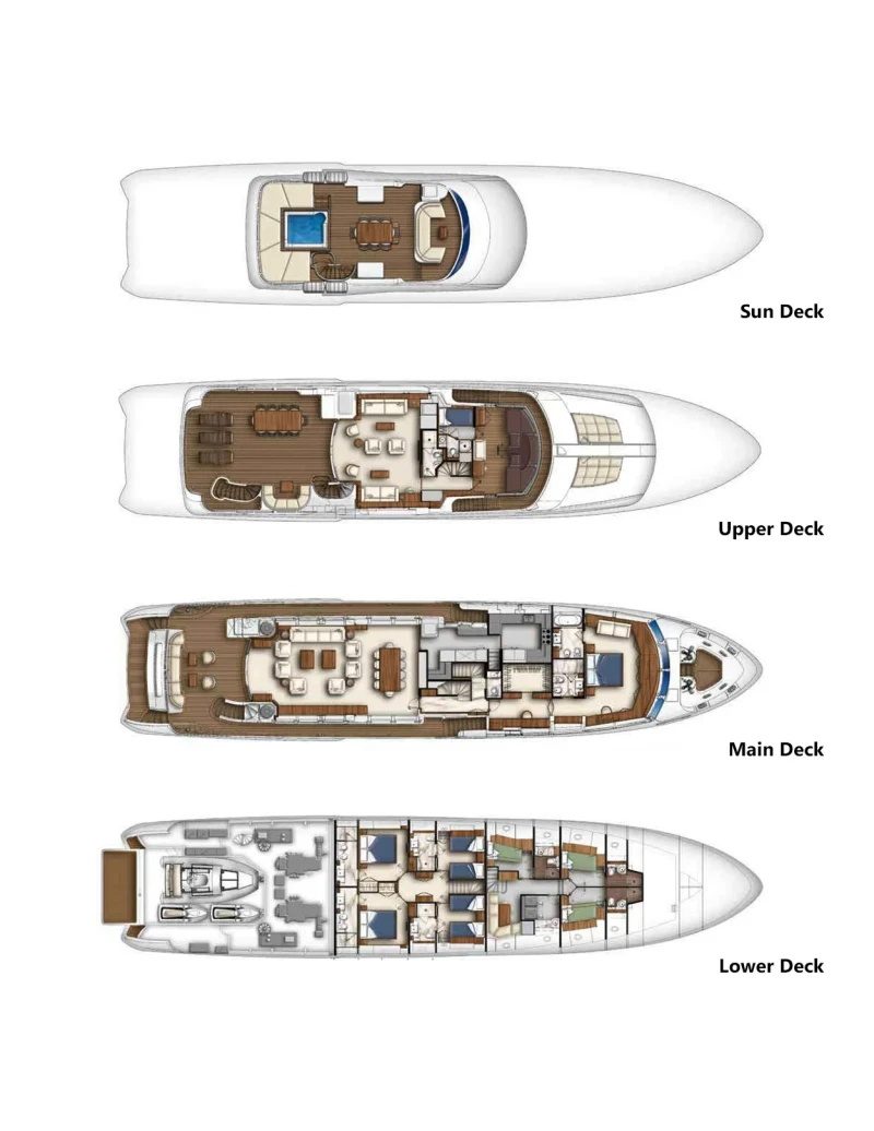 Abvios has been designed to comfortably accommodate up to 10 guests in 5 suites. She is also capable of carrying up to 7 crew onboard to ensure a relaxed luxury yacht experience.