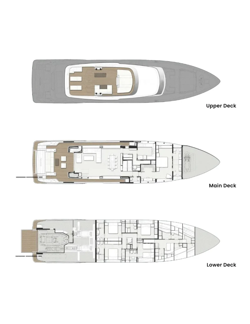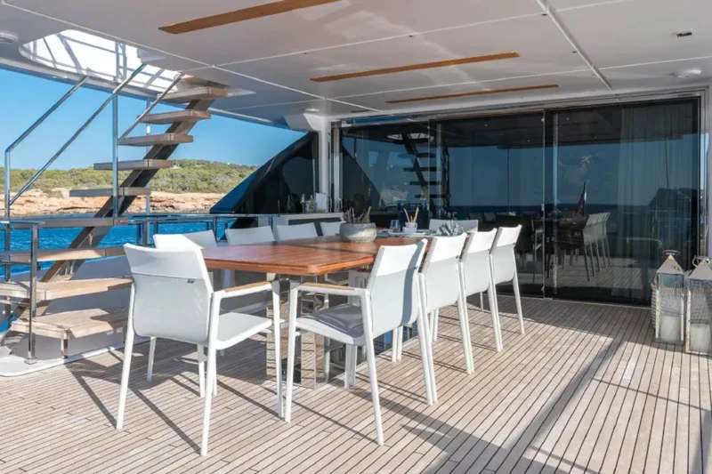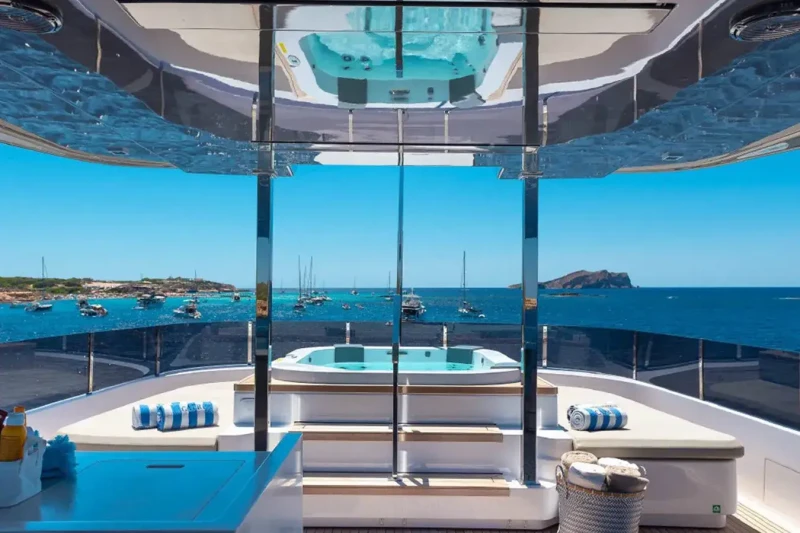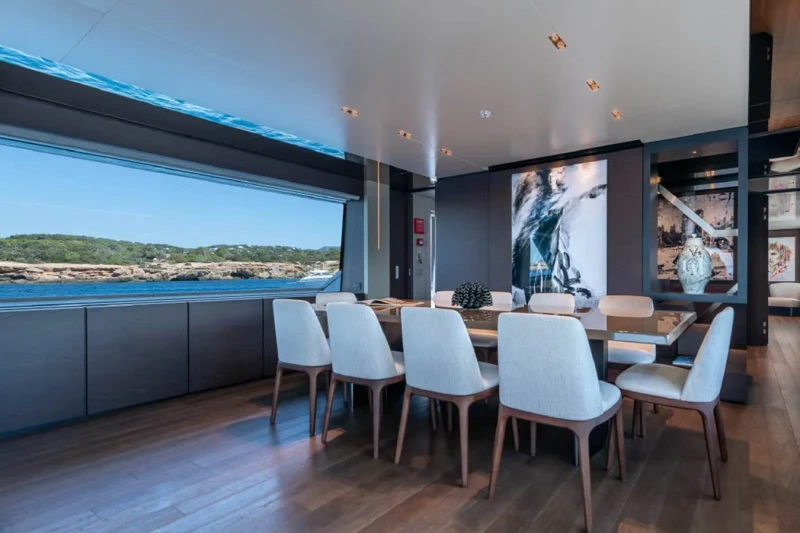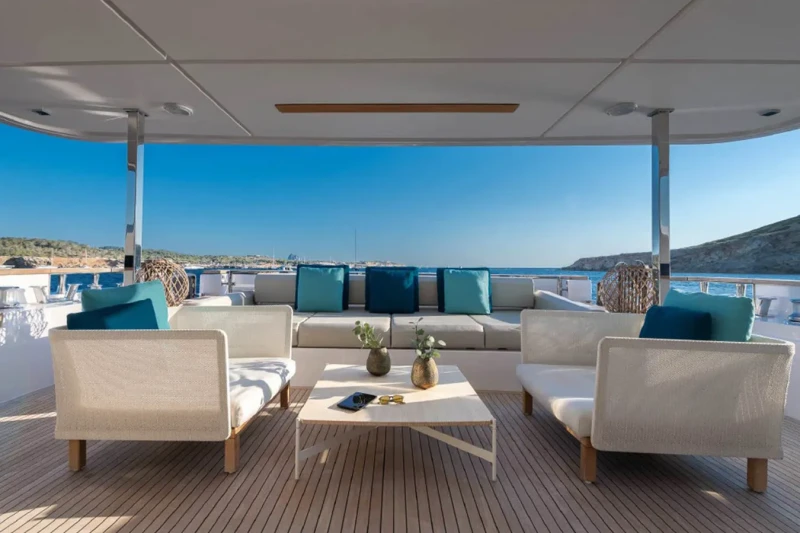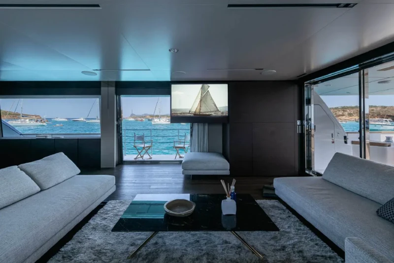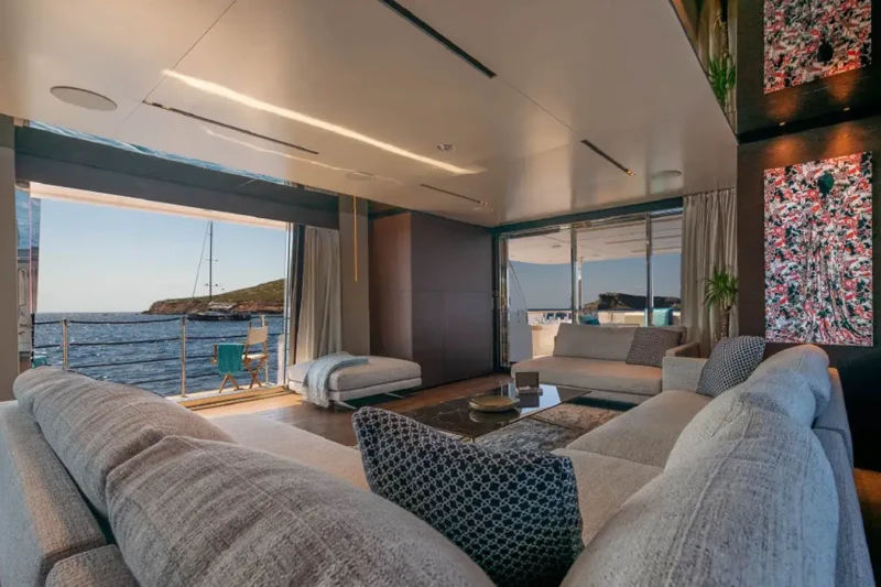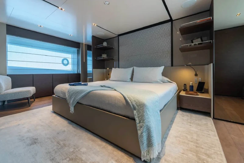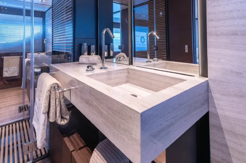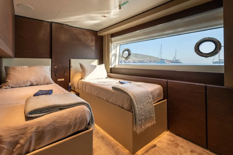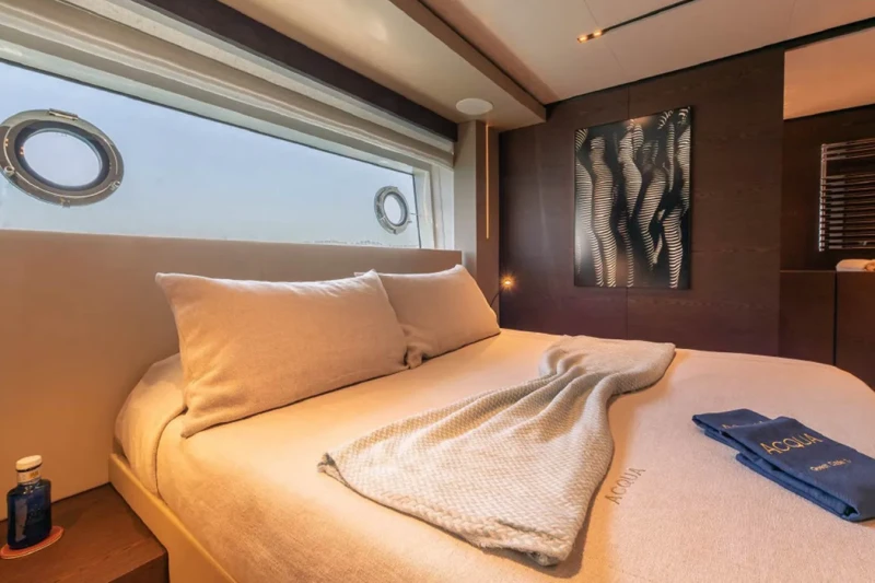 Acqua offers guest accommodation for up to 11 guests in 5 suites comprising a master suite located on the main deck, two double cabins, one twin cabin and one cabin that can operate as twin or double. She is also capable of carrying up to 6 crew onboard to ensure a relaxed luxury yacht charter experience.