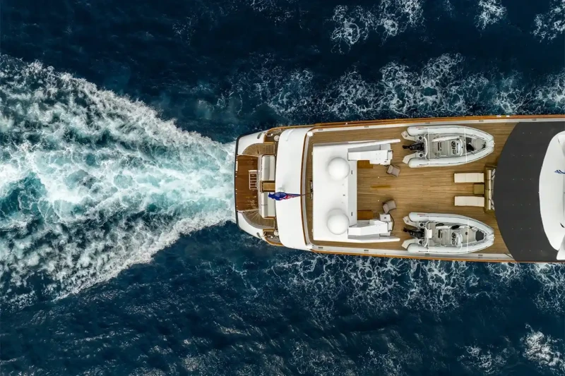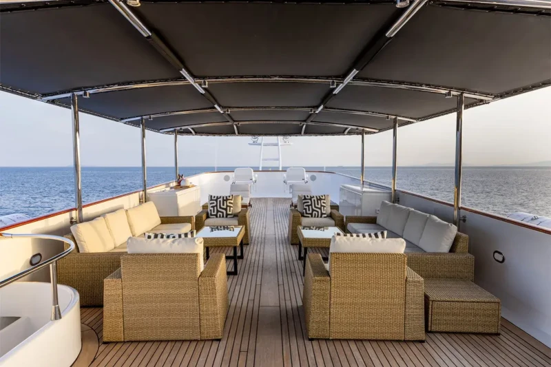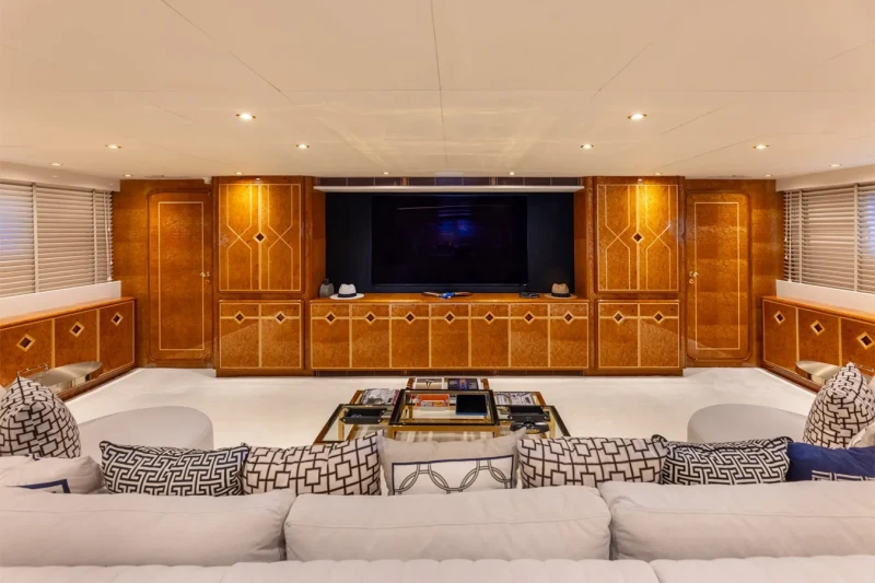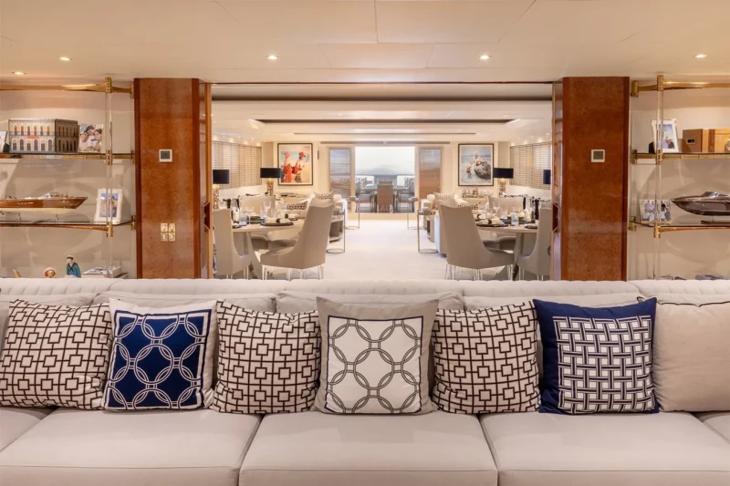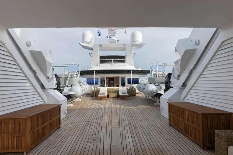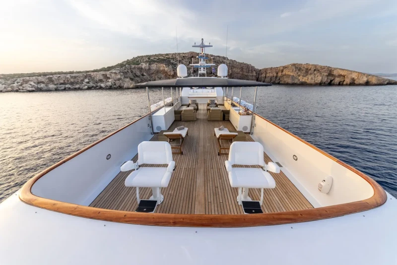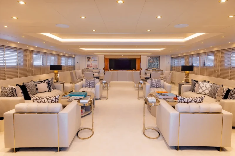 Her features include underwater lights, deck jacuzzi, WiFi and air conditioning.