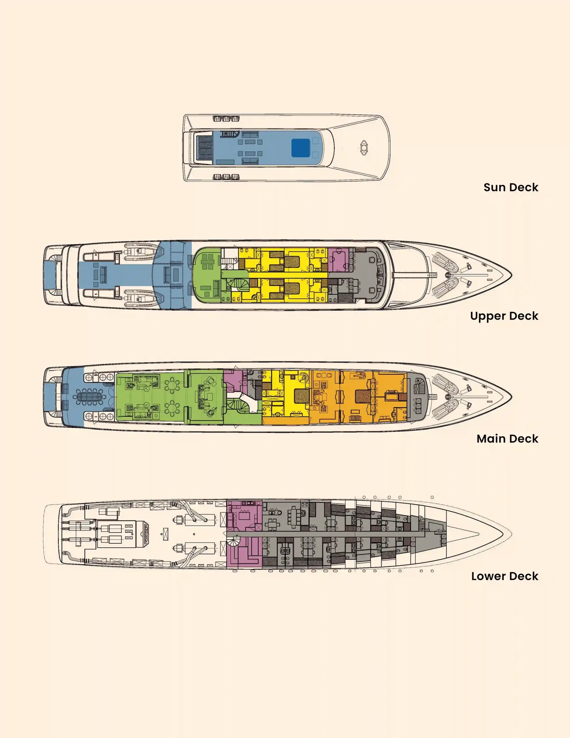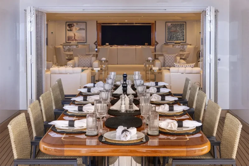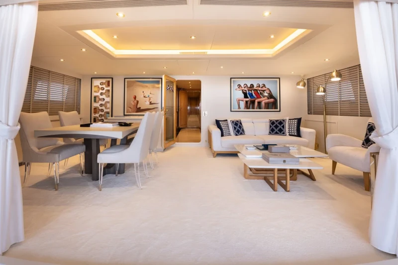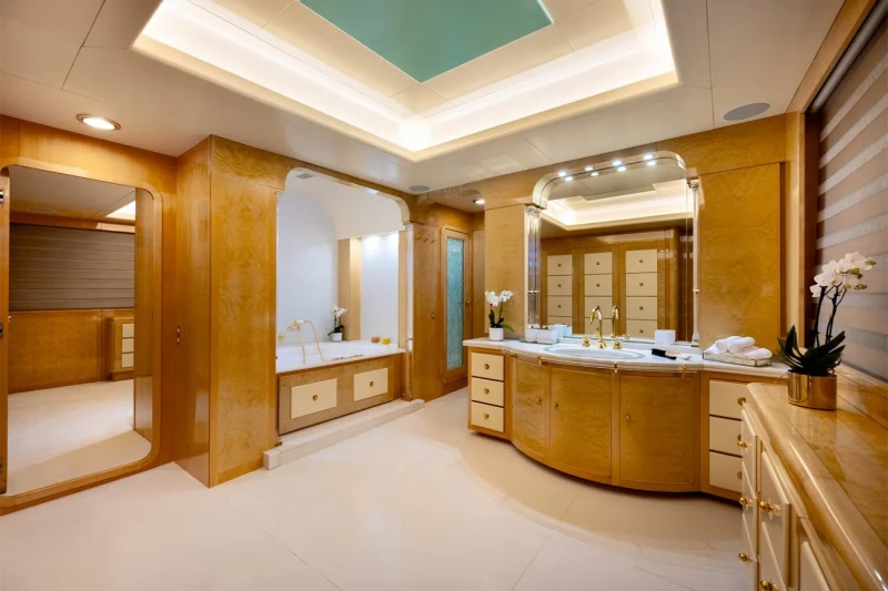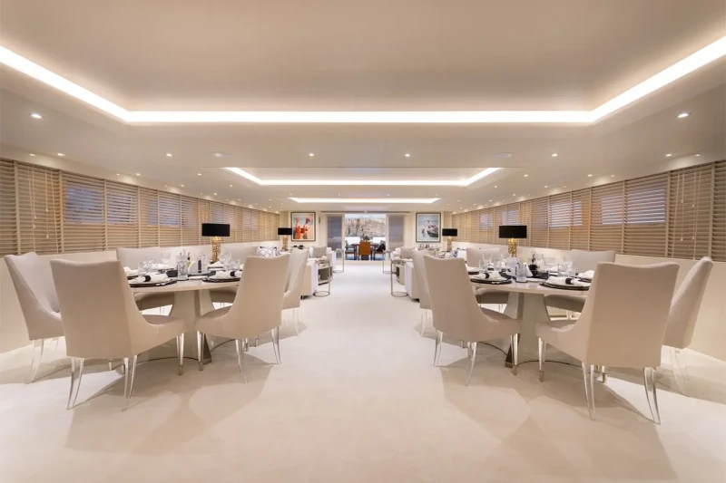 Adamas V has been designed to comfortably accommodate up to 12 guests in 6 suites comprising one VIP cabin. She is also capable of carrying up to 20 crew onboard to ensure a relaxed luxury yacht experience.