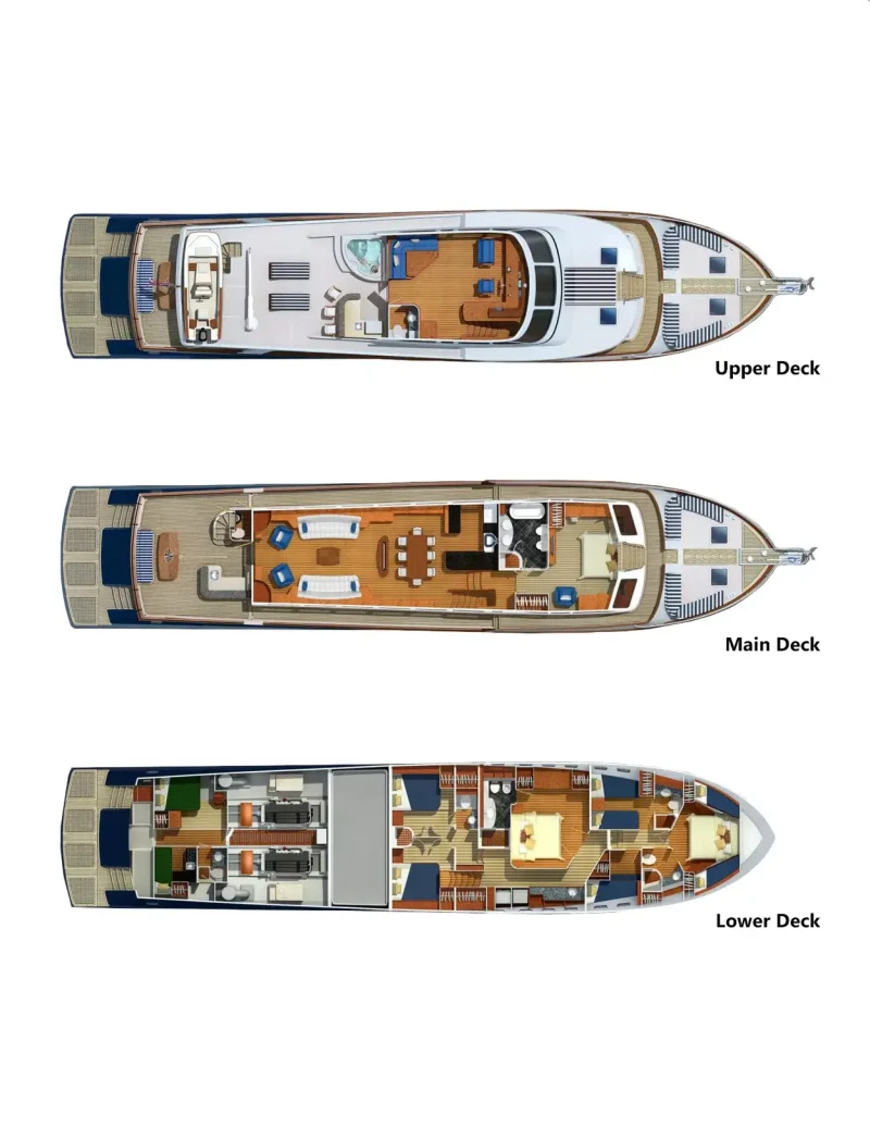 Agave has been designed to comfortably accommodate up to 12 guests in 7 suites comprising two VIP cabins. She is also capable of carrying up to 3 crew onboard to ensure a relaxed luxury yacht experience.