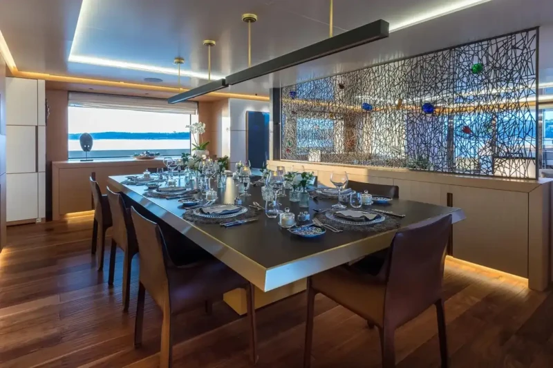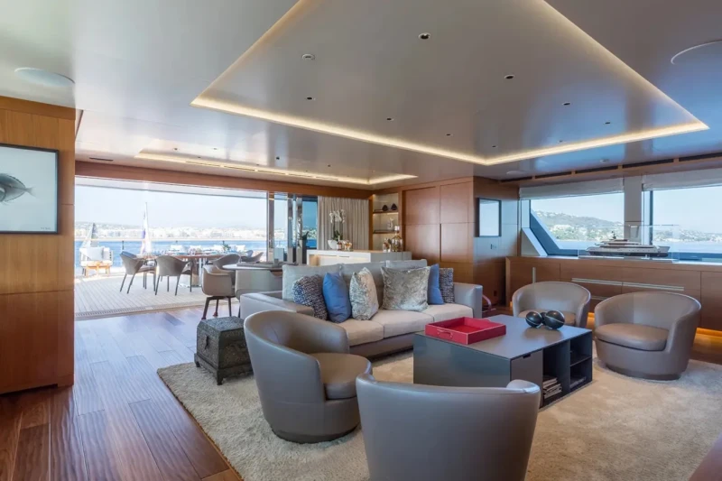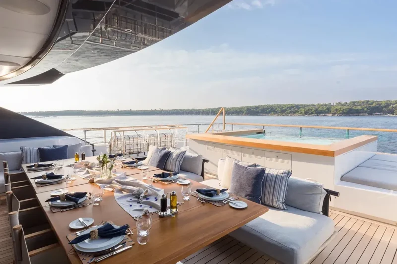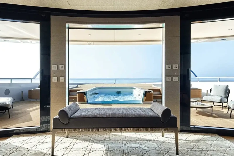 Her features include a spa, beauty salon, underwater lights, beach club, deck jacuzzi, WiFi and air conditioning.