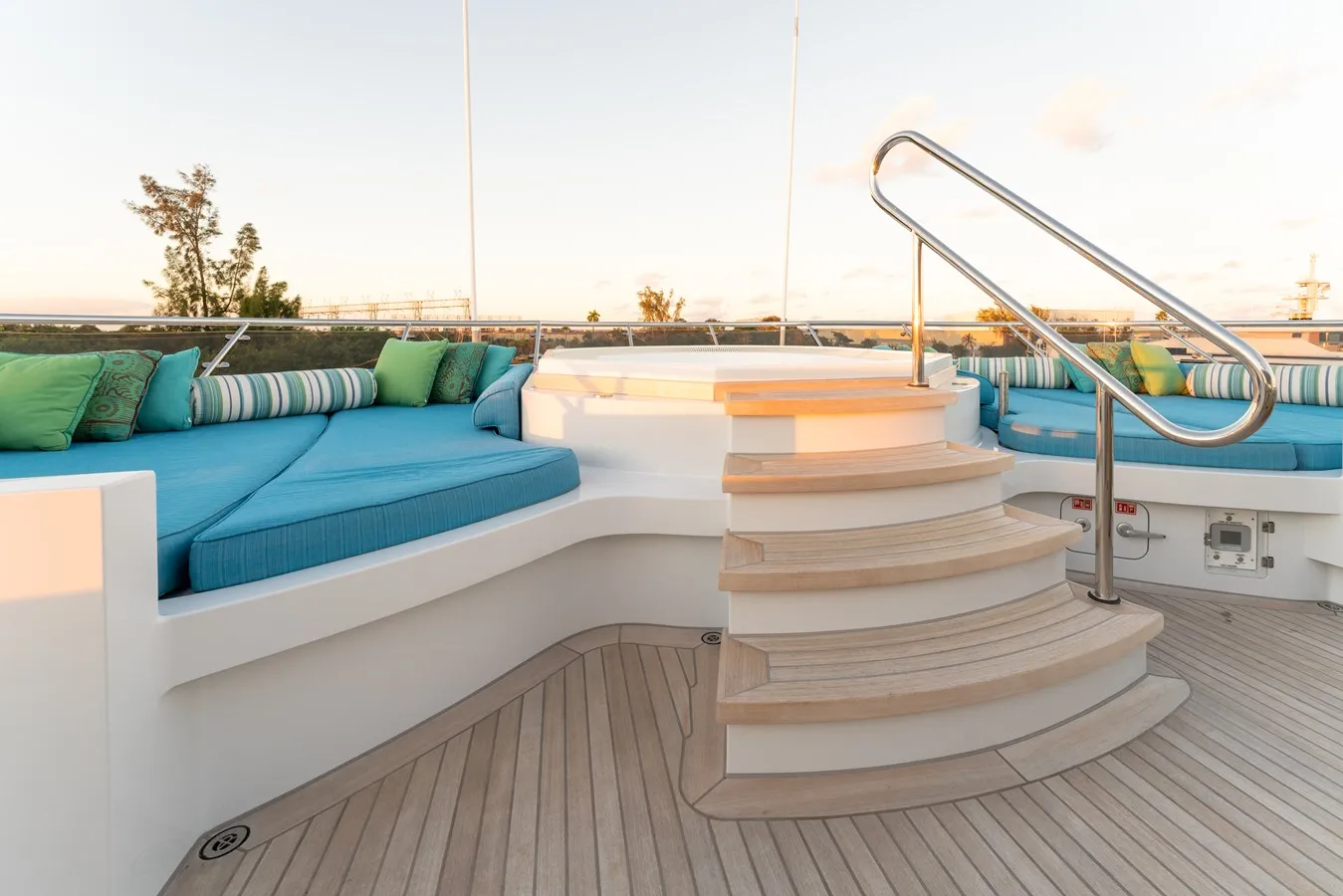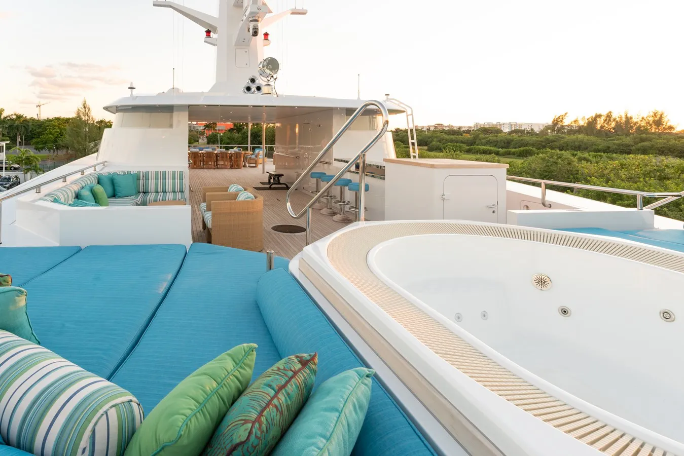 Her features include a gym, deck jacuzzi, WiFi and air conditioning.