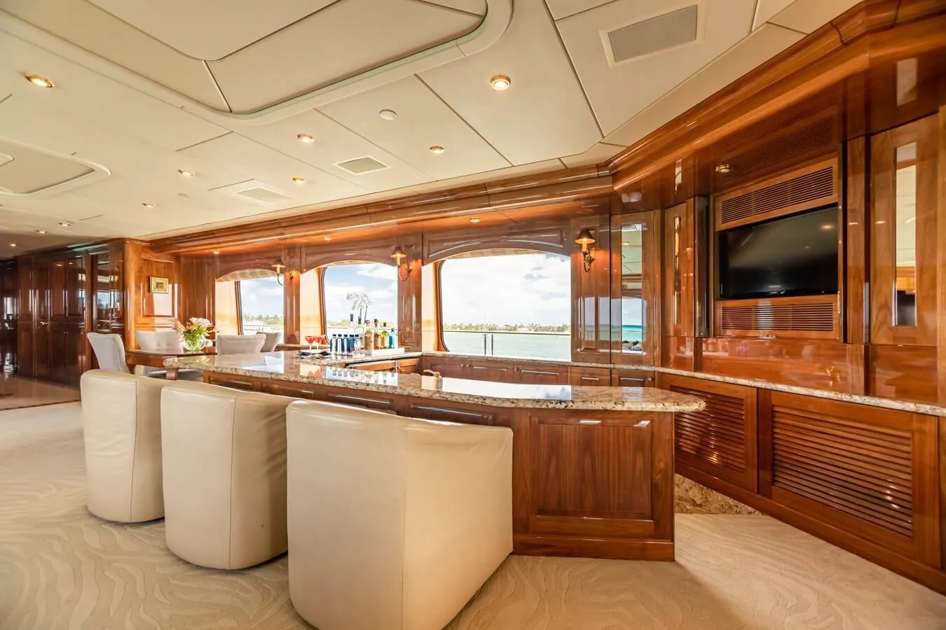 - Sleek wet bar with seating for 9