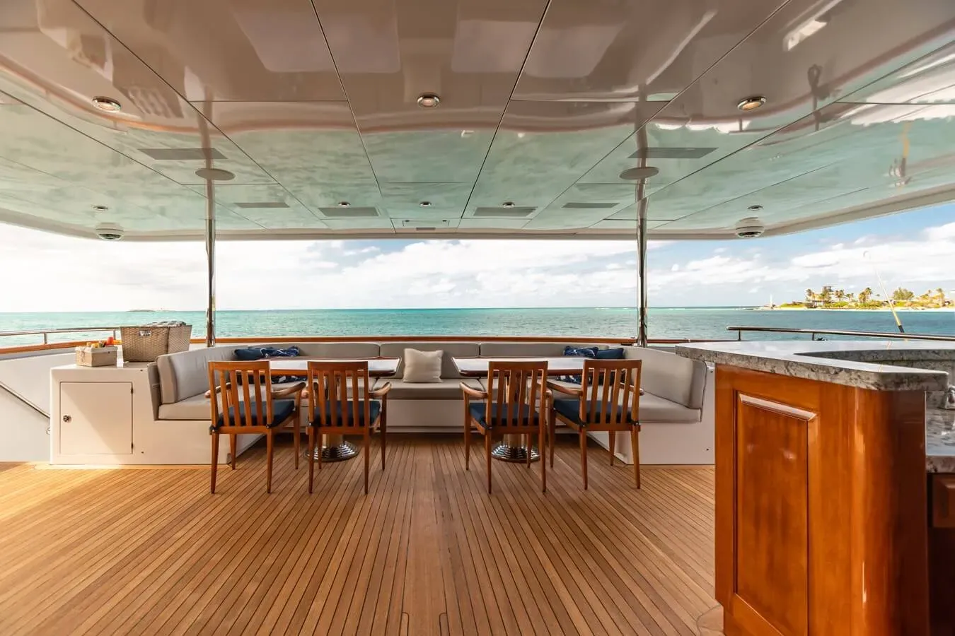 A charter on Amore is comfortable and convenient thanks to the provided amenities, notably a gym with all the latest equipment to maintain your fitness routine. Retreat to the deck jacuzzi and soak up the scenery.
