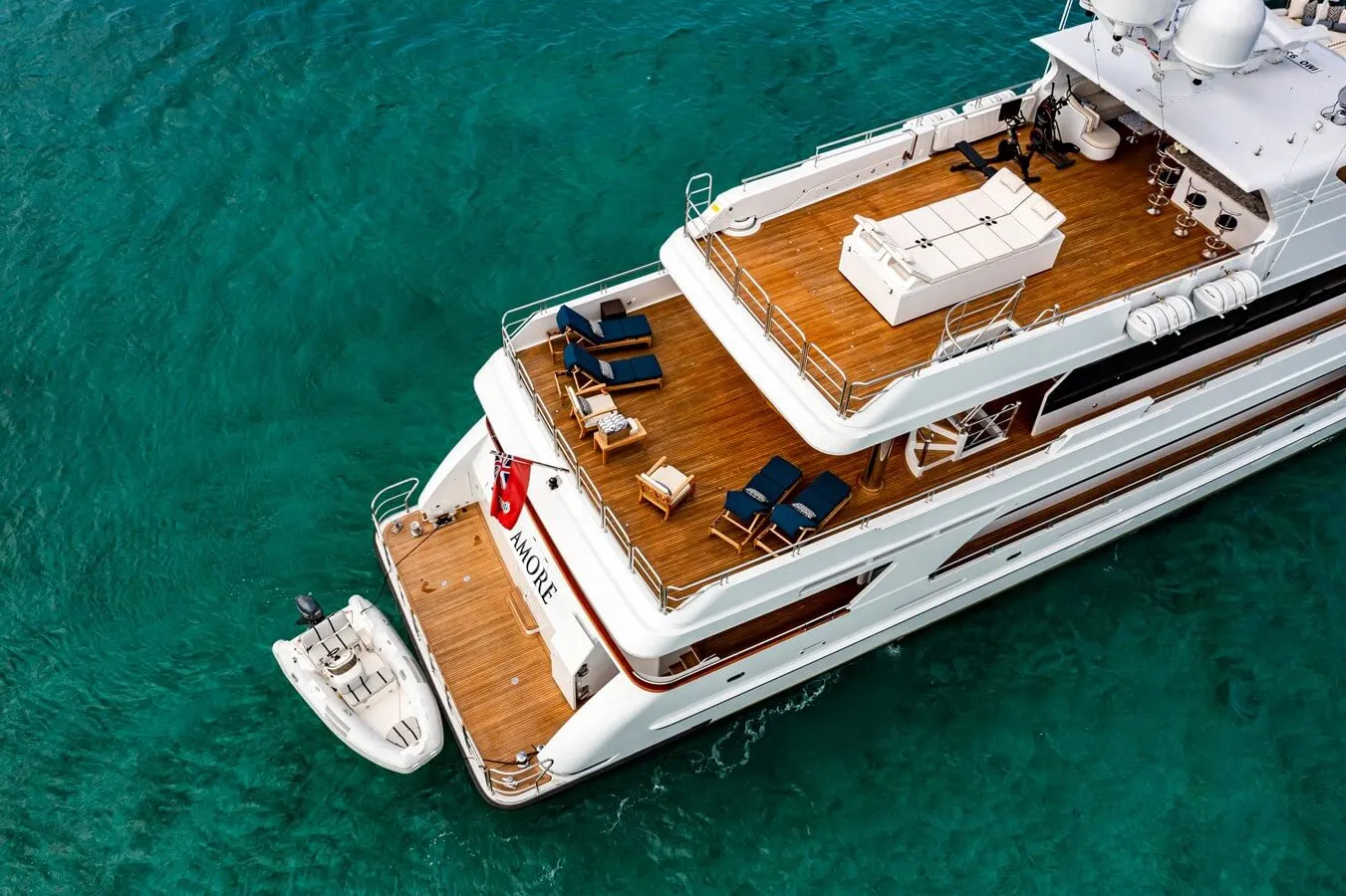 Families will particularly love Amore thanks to her child-friendly setup. She offers guest accommodation for up to 12 guests with a layout comprising a master suite, one VIP cabin, two double cabins and two twin cabins. There are 10 beds in total, including 2 king, 2 queen, 2 doubles, 2 singles and 2 pullmans. She is also capable of carrying up to 9 crew onboard to ensure a relaxed luxury yacht charter experience.