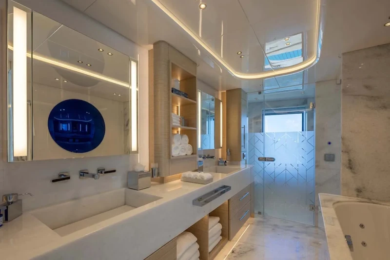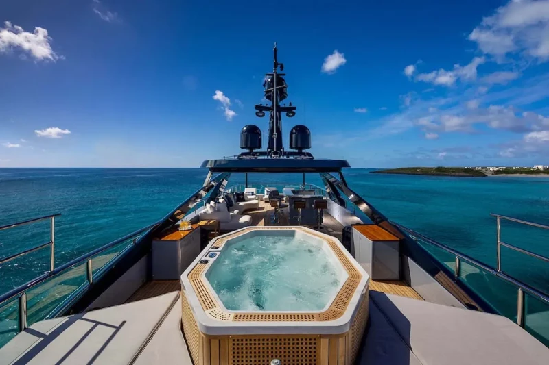 A charter on Ancora is comfortable and convenient thanks to the provided amenities, particularly a beach club for you to relax on the edge of the water. Soak up the bubbles in style in the deck jacuzzi.