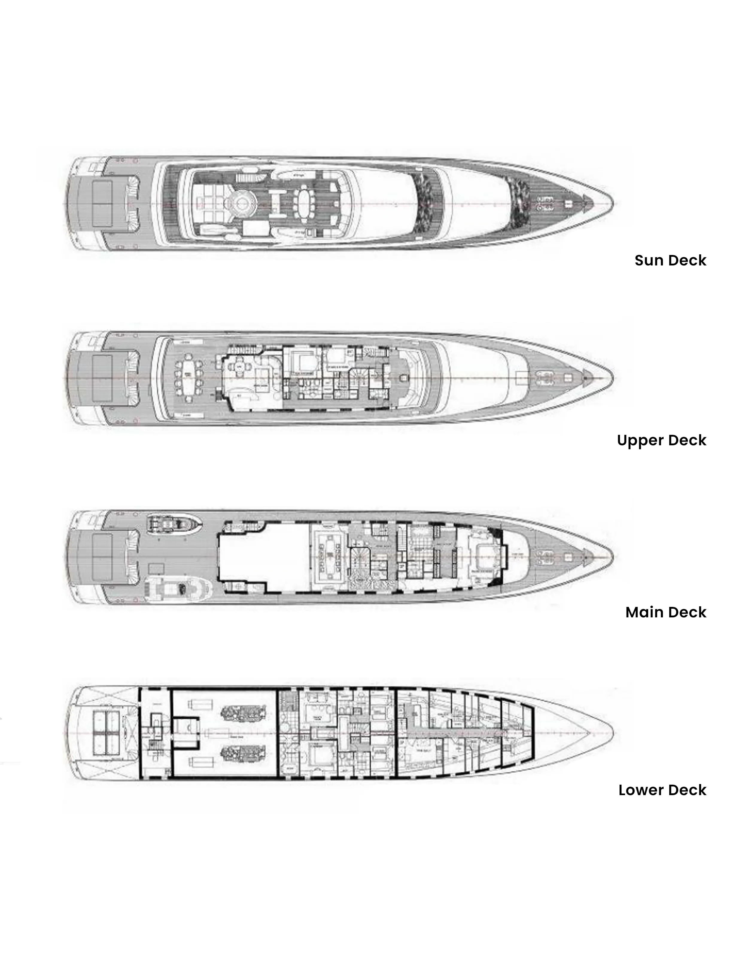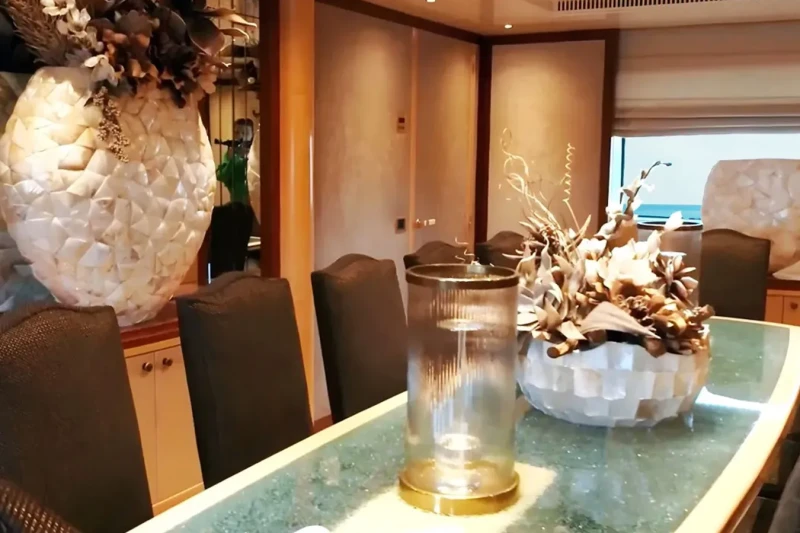 Anna J has been designed to comfortably accommodate up to 12 guests in 6 suites comprising two VIP cabins. She is also capable of carrying up to 10 crew onboard to ensure a relaxed luxury yacht experience.