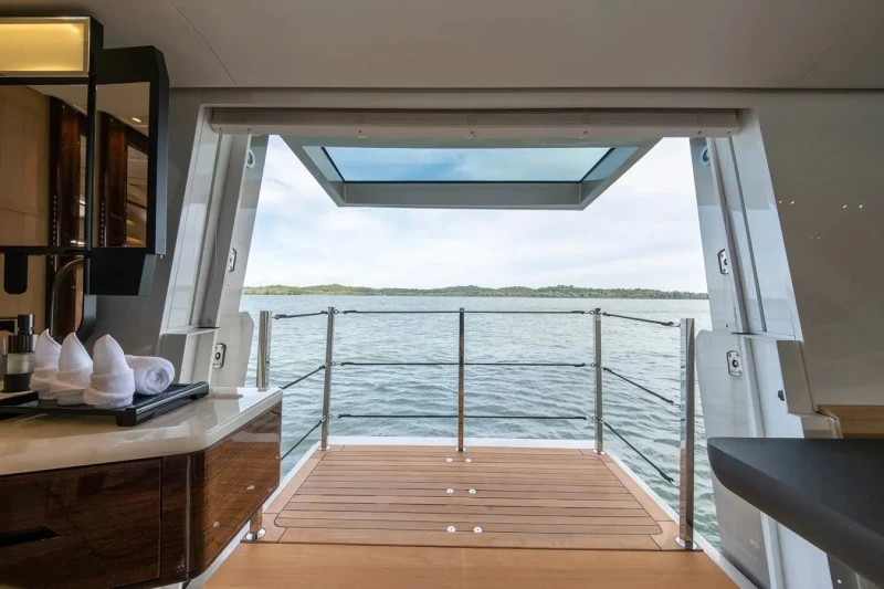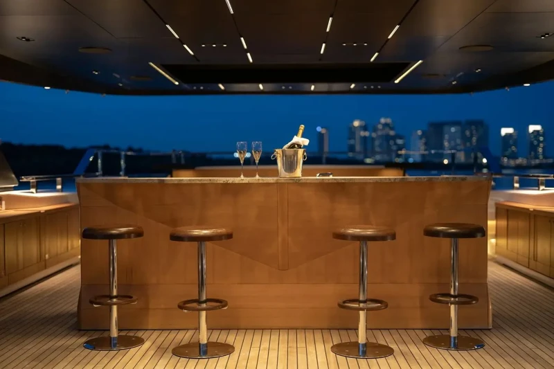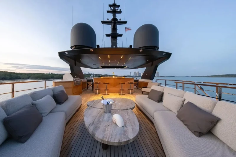 Her features include satellite communications, beach club, deck jacuzzi, WiFi and air conditioning.