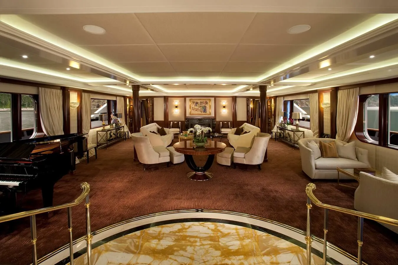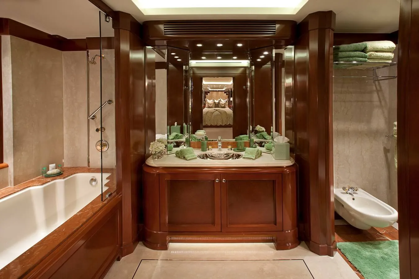 Her features include steam room, spa, beauty salon, elevator, underwater lights, beach club, gym, deck jacuzzi, WiFi and air conditioning.