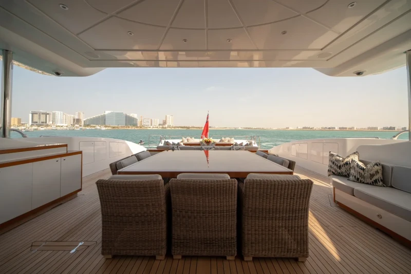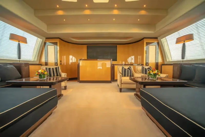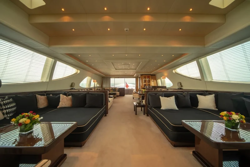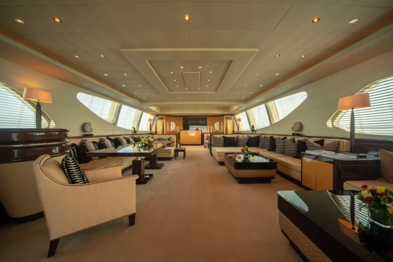 Bash IV has been designed to comfortably accommodate up to 10 guests in 5 suites comprising four VIP cabins. The supremely spacious full beam master suite incorporates its own study benefits from a his and her bathroom. She is also capable of carrying up to 9 crew onboard to ensure a relaxed luxury yacht experience.