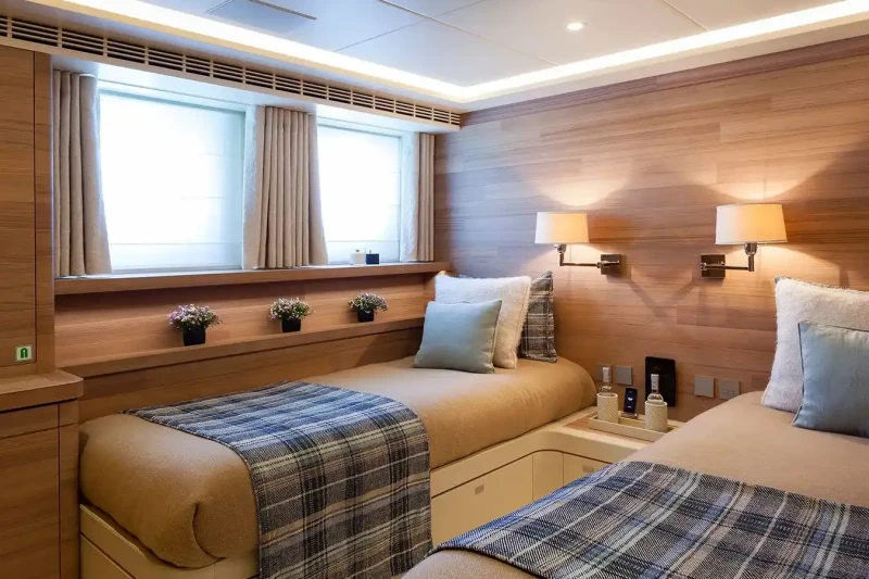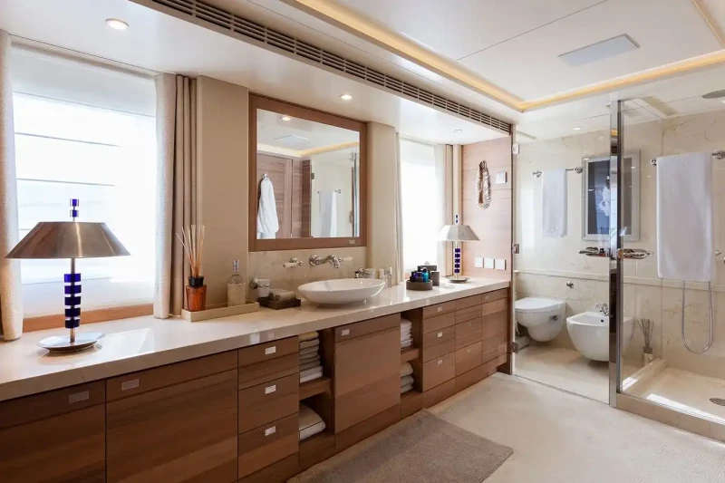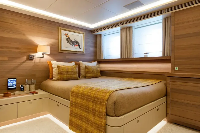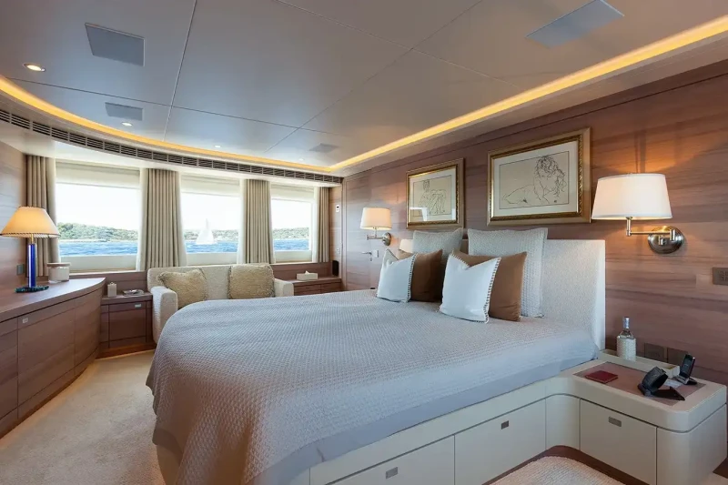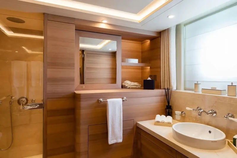 Sibelle has been designed to comfortably accommodate up to 10 guests in 5 suites comprising two VIP cabins. She is also capable of carrying up to 11 crew onboard to ensure a relaxed luxury yacht experience.
