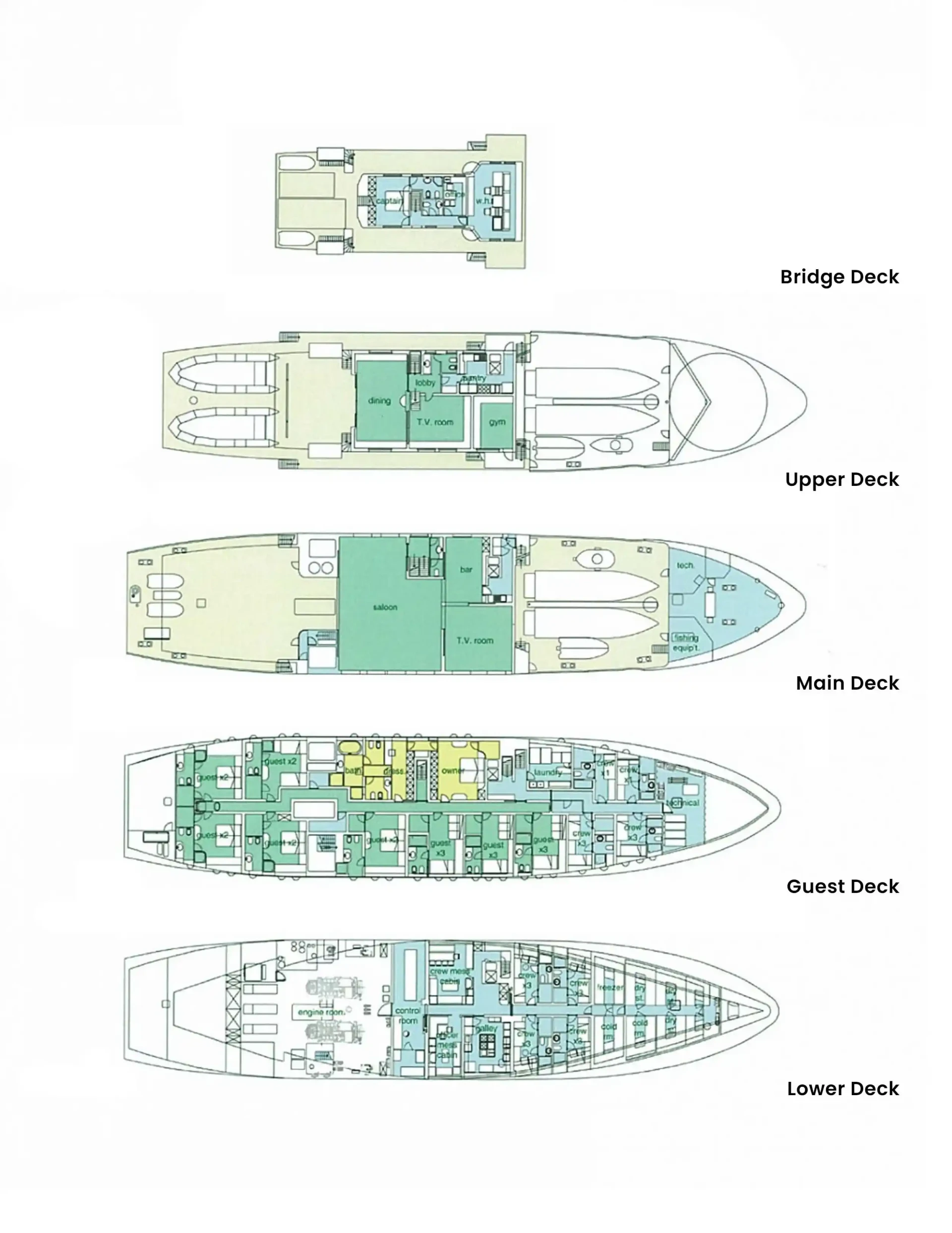- Sauna, massage room and gym on bridge deck