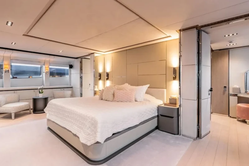 Bliss is great for families thanks to her child-friendly setup. Built in 2007, She offers guest accommodation for up to 12 guests with a layout comprising a master suite, four double cabins and one twin cabin. There are 6 beds in total, including 1 king, 4 queen, 2 singles and 1 pullman. She is also capable of carrying up to 9 crew onboard to ensure a relaxed luxury yacht charter experience.