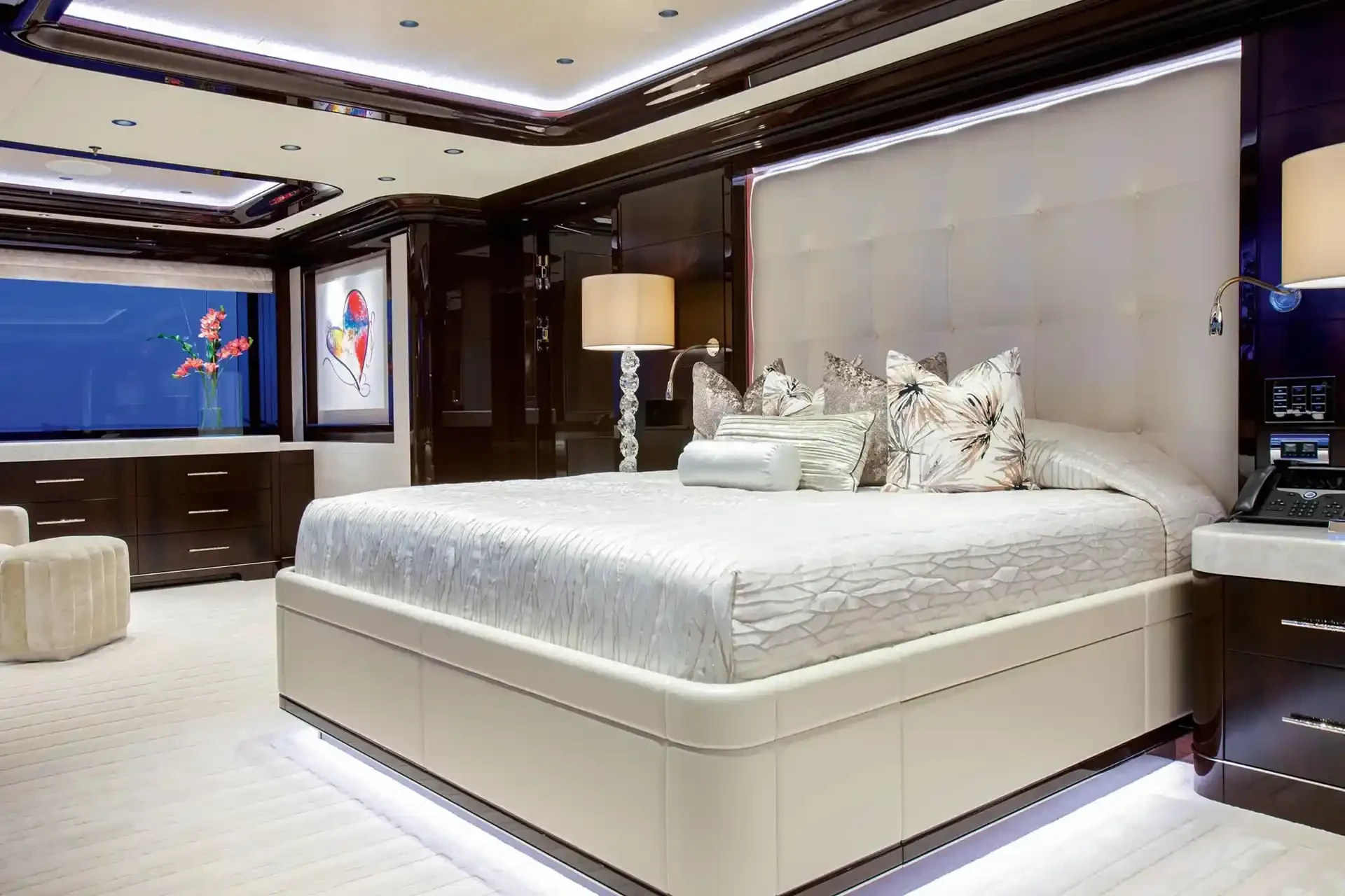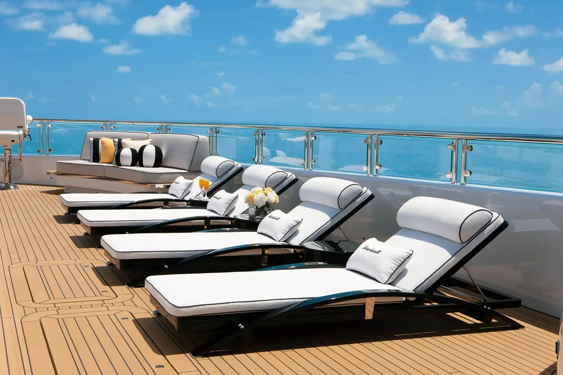 Boardwalk has been designed to comfortably accommodate up to 14 guests in 7 suites comprising one VIP cabin. She is also capable of carrying up to 22 crew onboard to ensure a relaxed luxury yacht experience.