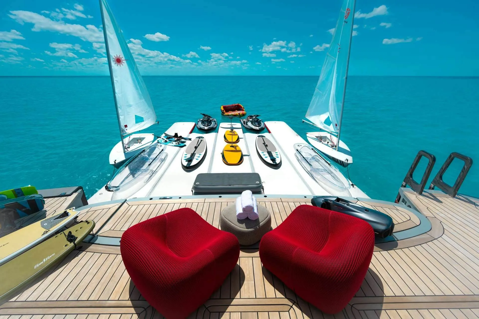 Keeping comfortable and entertained on Bold is easy thanks to the available amenities such as a dancefloor where you and your guests can celebrate in style. For the ultimate relaxation experience, Bold plays host to a luxury spa or elsewhere, a gym with all the latest equipment is available for a good work out. Sit back with a glass of champagne in the deck jacuzzi.