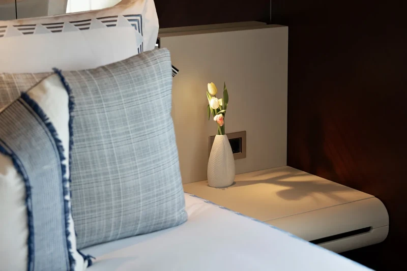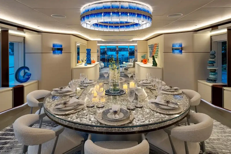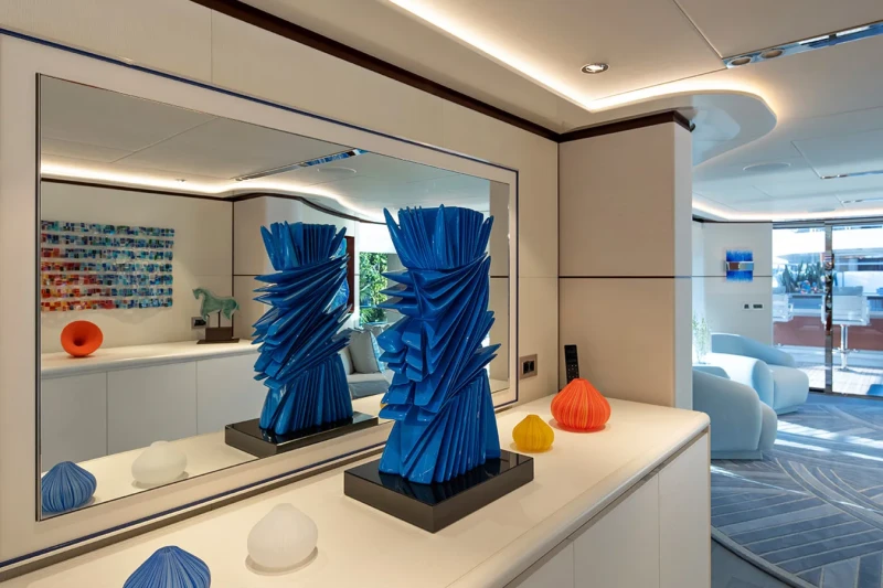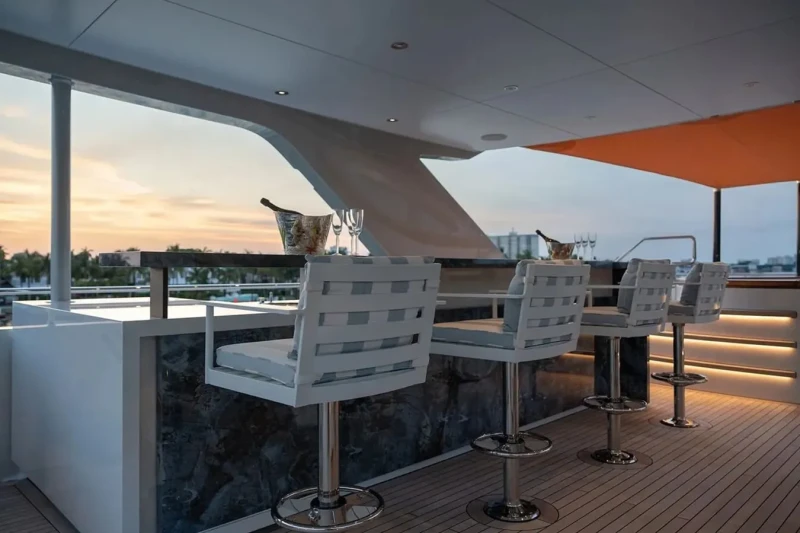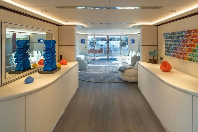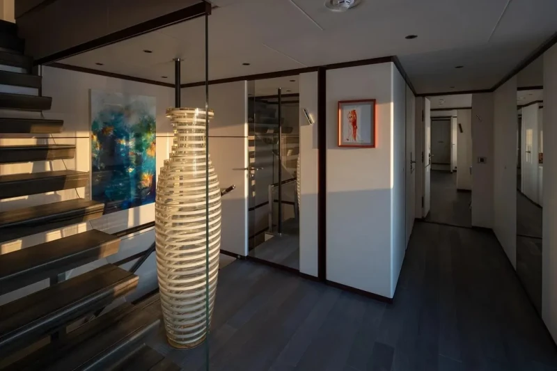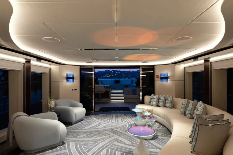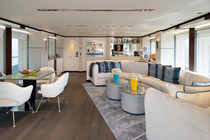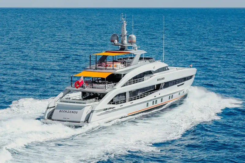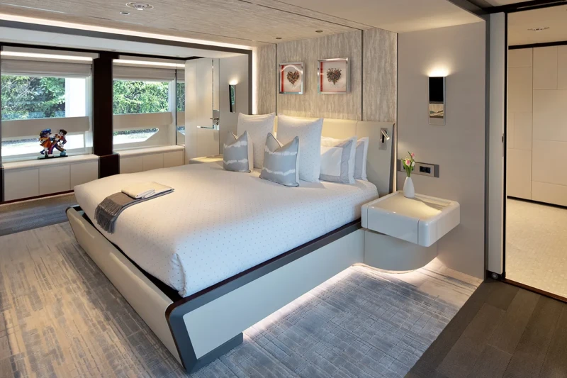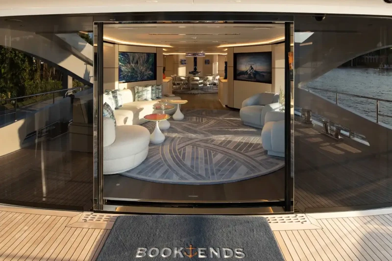 Book Ends has been designed to comfortably accommodate up to 10 guests in 5 suites. The supremely spacious full beam master suite incorporates its own study and dressing room. She is also capable of carrying up to 9 crew onboard to ensure a relaxed luxury yacht experience.