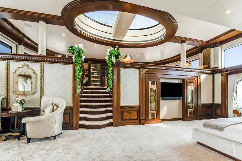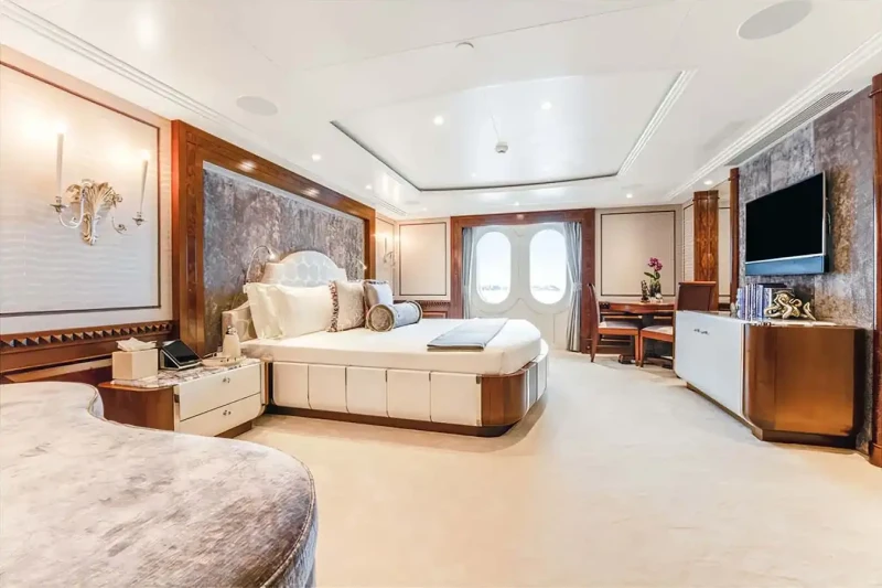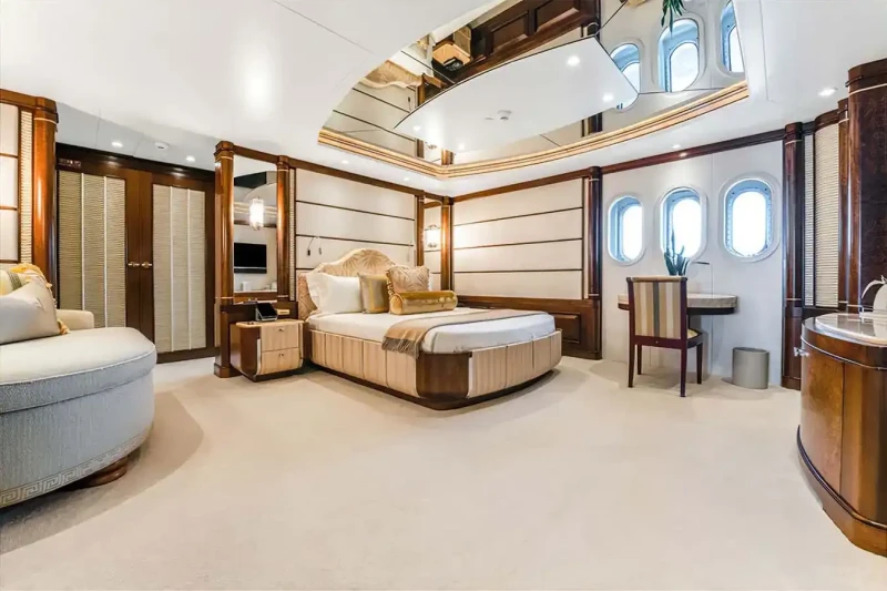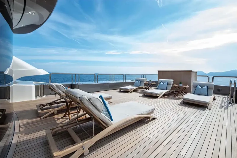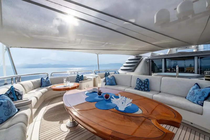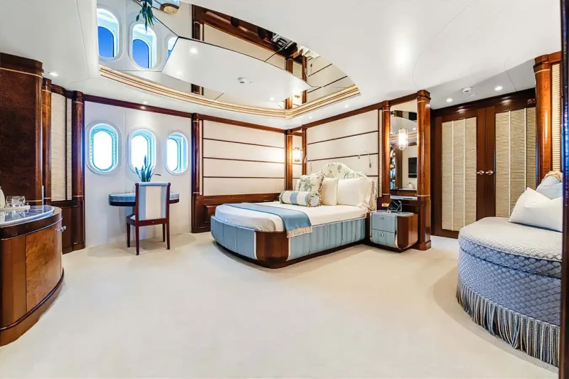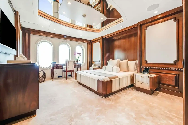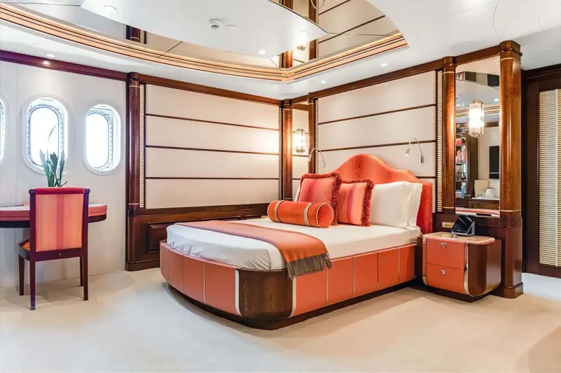 Families will particularly love Calypso thanks to her child-friendly setup. She offers guest accommodation for up to 12 guests with a layout comprising a master suite, one VIP cabin and four double cabins. There are 9 beds in total, including 2 king, 4 queen, 4 pullmans and 1 convertible. She is also capable of carrying up to 15 crew onboard to ensure a relaxed luxury yacht charter experience.