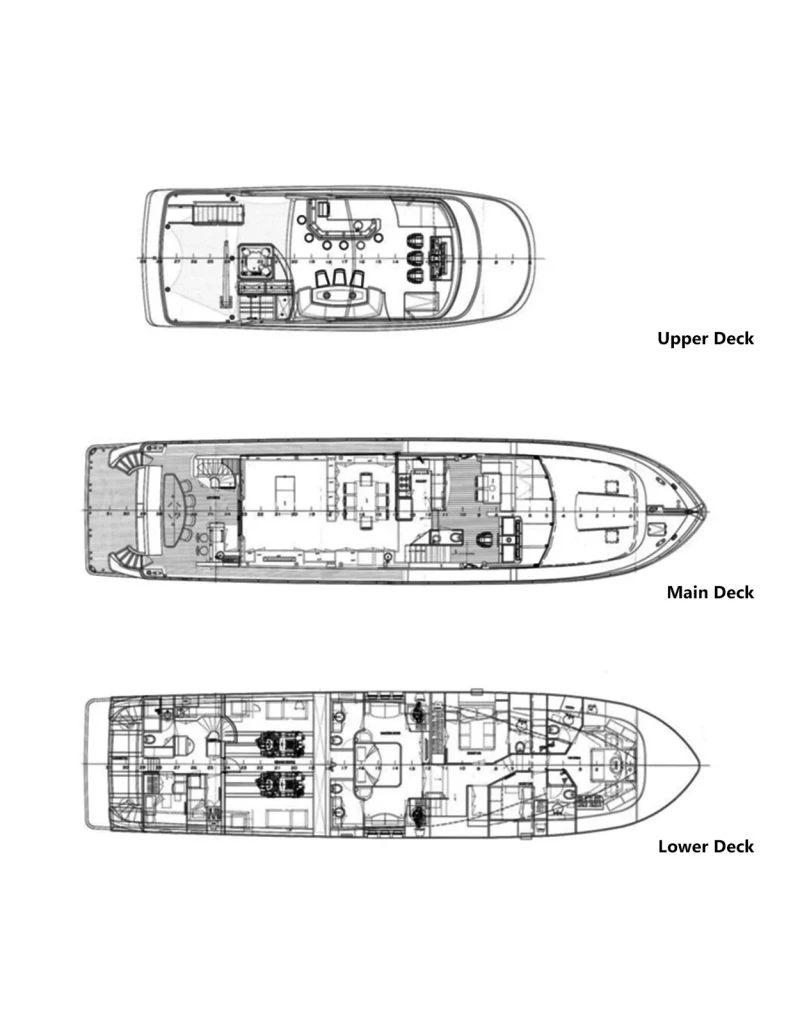 Aura has been designed to comfortably accommodate up to 6 guests in 3 suites. She is also capable of carrying up to 3 crew onboard to ensure a relaxed luxury yacht experience.