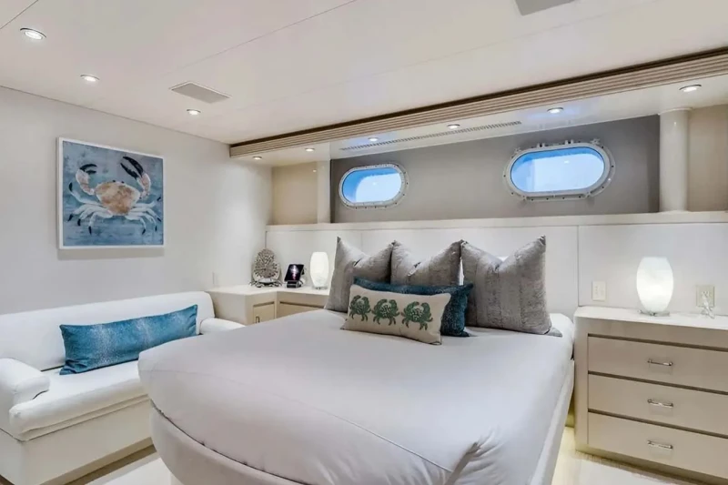 Built in 2000, Cupcake offers guest accommodation for up to 12 guests in 5 suites comprising a master suite, three double cabins and one twin cabin. The bed configuration includes 1 king, 3 queen and 2 singles. She is also capable of carrying up to 8 crew onboard to ensure a relaxed luxury yacht charter experience.