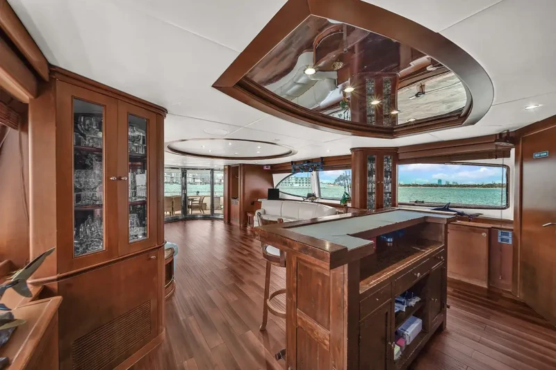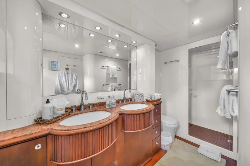 Daniela has been designed to comfortably accommodate up to 8 guests in 4 suites comprising one VIP cabin. The supremely spacious full beam master suite features extensive storage space provided by the dressing room benefits from a his and her bathroom. She is also capable of carrying up to 4 crew onboard to ensure a relaxed luxury yacht experience.