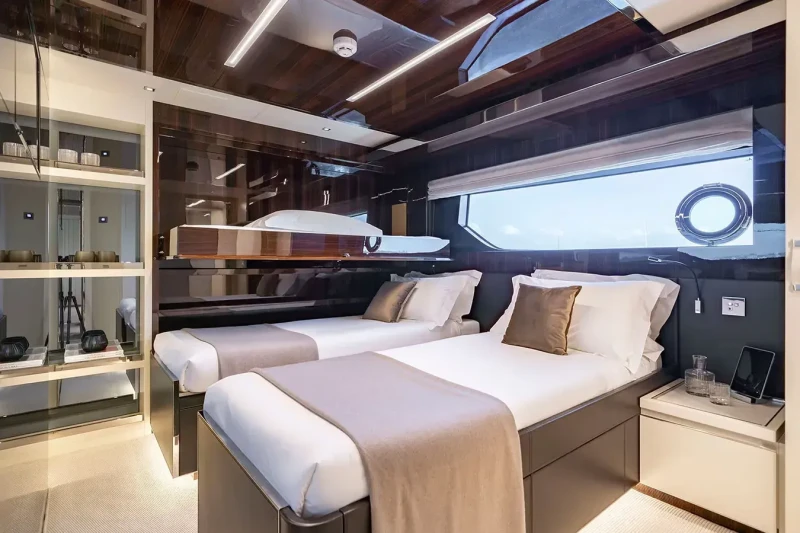 Built in 2019, Elysium I offers guest accommodation for up to 11 guests in 5 suites comprising a master suite, two double cabins and two cabins that can operate as twins or doubles. There are 7 beds in total, including 1 king, 2 queen and 4 singles.