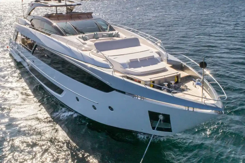 - Sleek foredeck spa pool and sunpad spread
