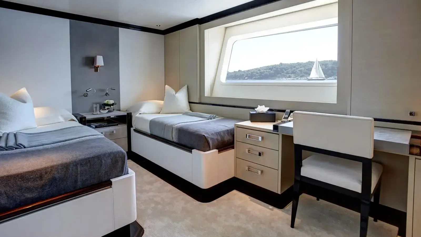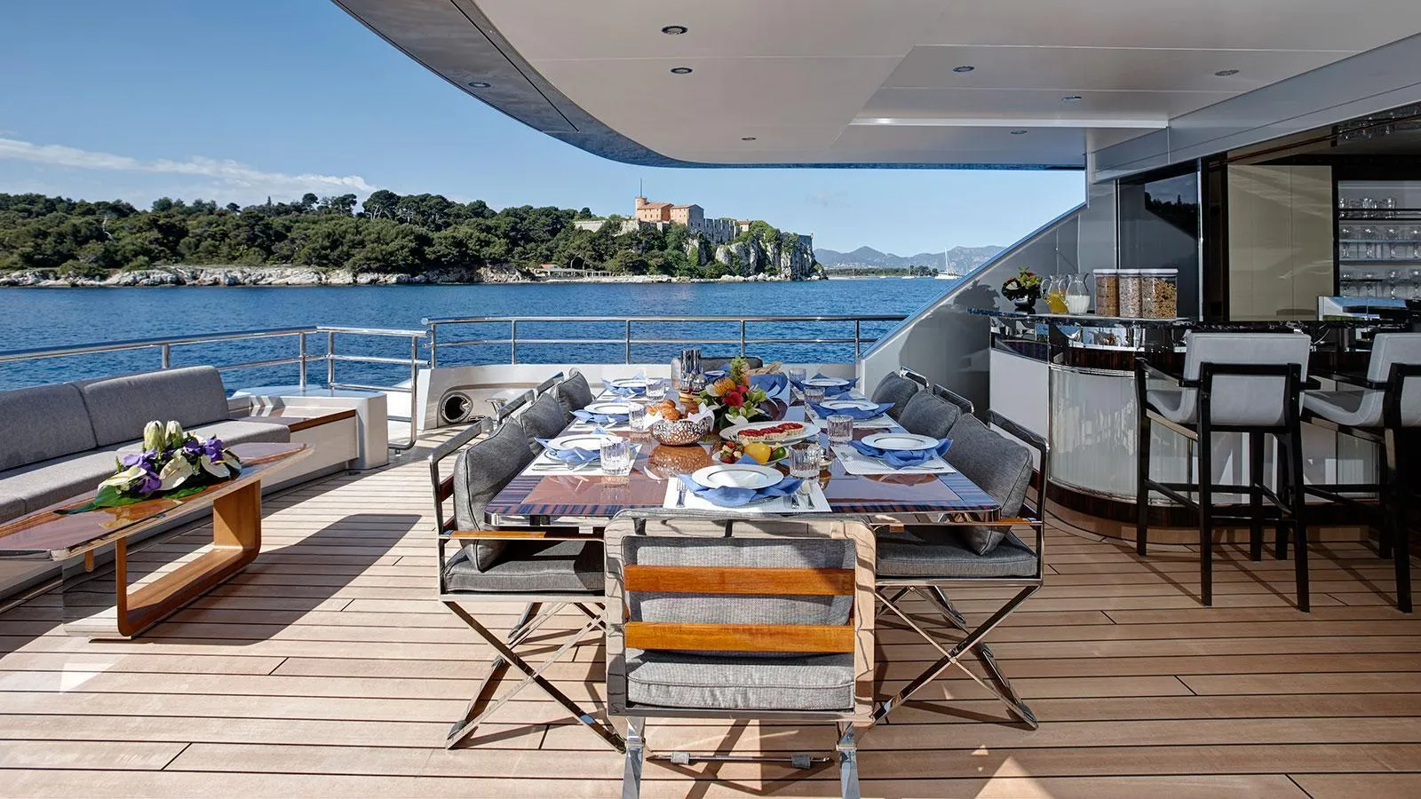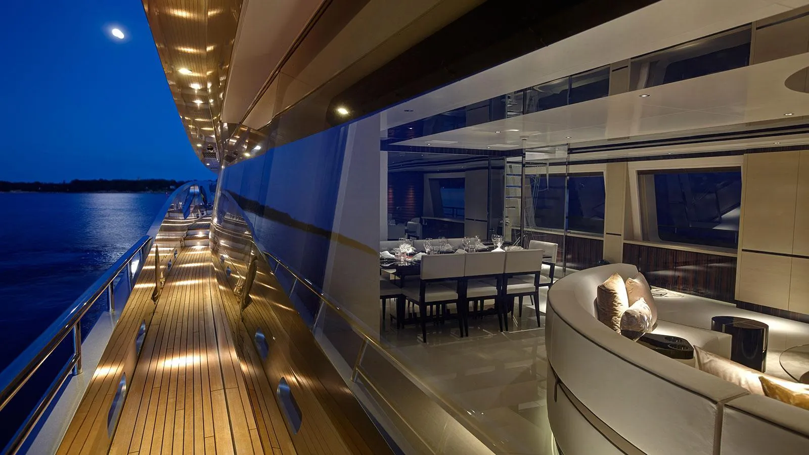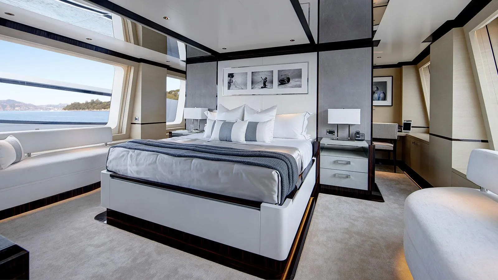 Excellence V has been designed to comfortably accommodate up to 10 guests in 5 suites. The supremely spacious full beam master suite features extensive storage space provided by the dressing room benefits from a his and her bathroom. She is also capable of carrying up to 8 crew onboard to ensure a relaxed luxury yacht experience.