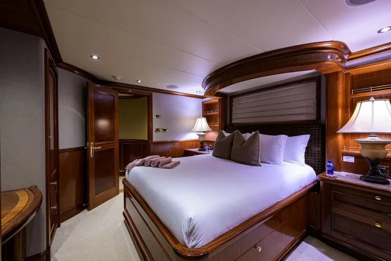Excellence offers guest accommodation for up to 12 guests in 6 suites comprising a master suite located on the main deck, three double cabins and one twin cabin. There are 6 beds in total, including 1 king, 3 queen and 2 singles. She is also capable of carrying up to 9 crew onboard to ensure a relaxed luxury yacht charter experience.