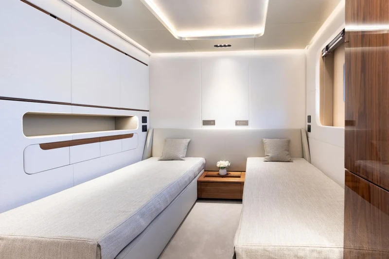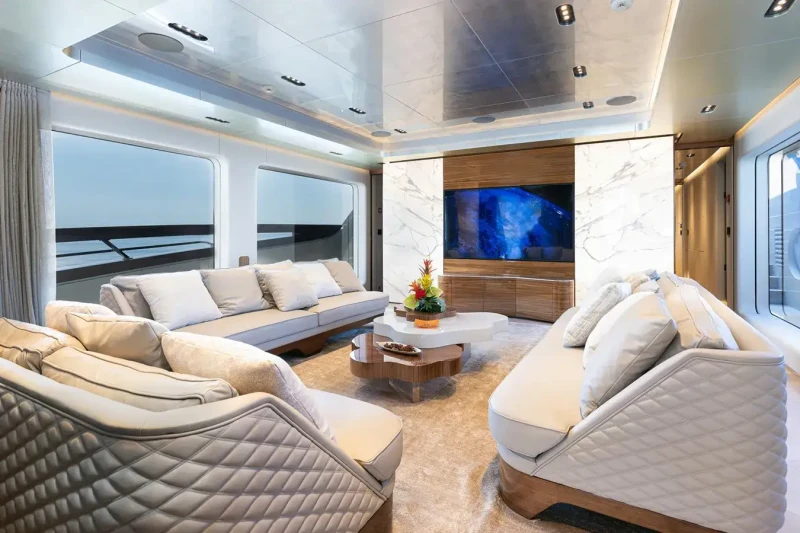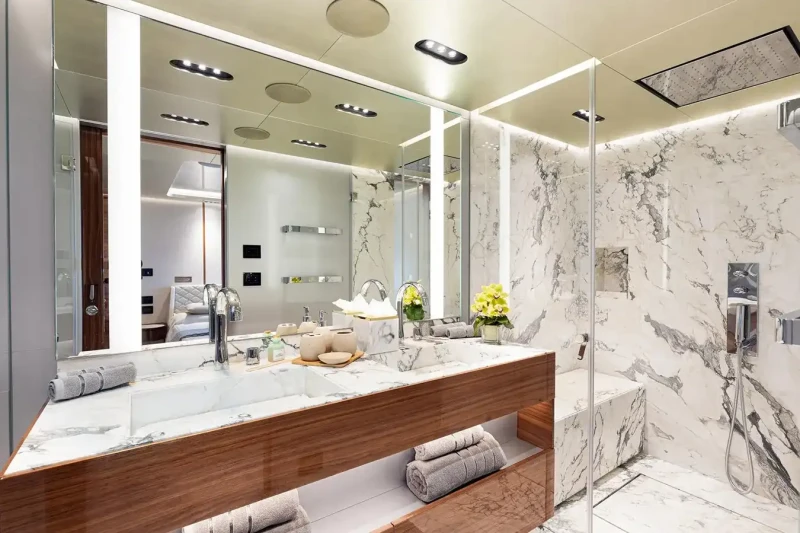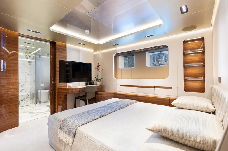 Lucy has been designed to comfortably accommodate up to 10 guests in 5 suites. She is also capable of carrying up to 5 crew onboard to ensure a relaxed luxury yacht experience.
