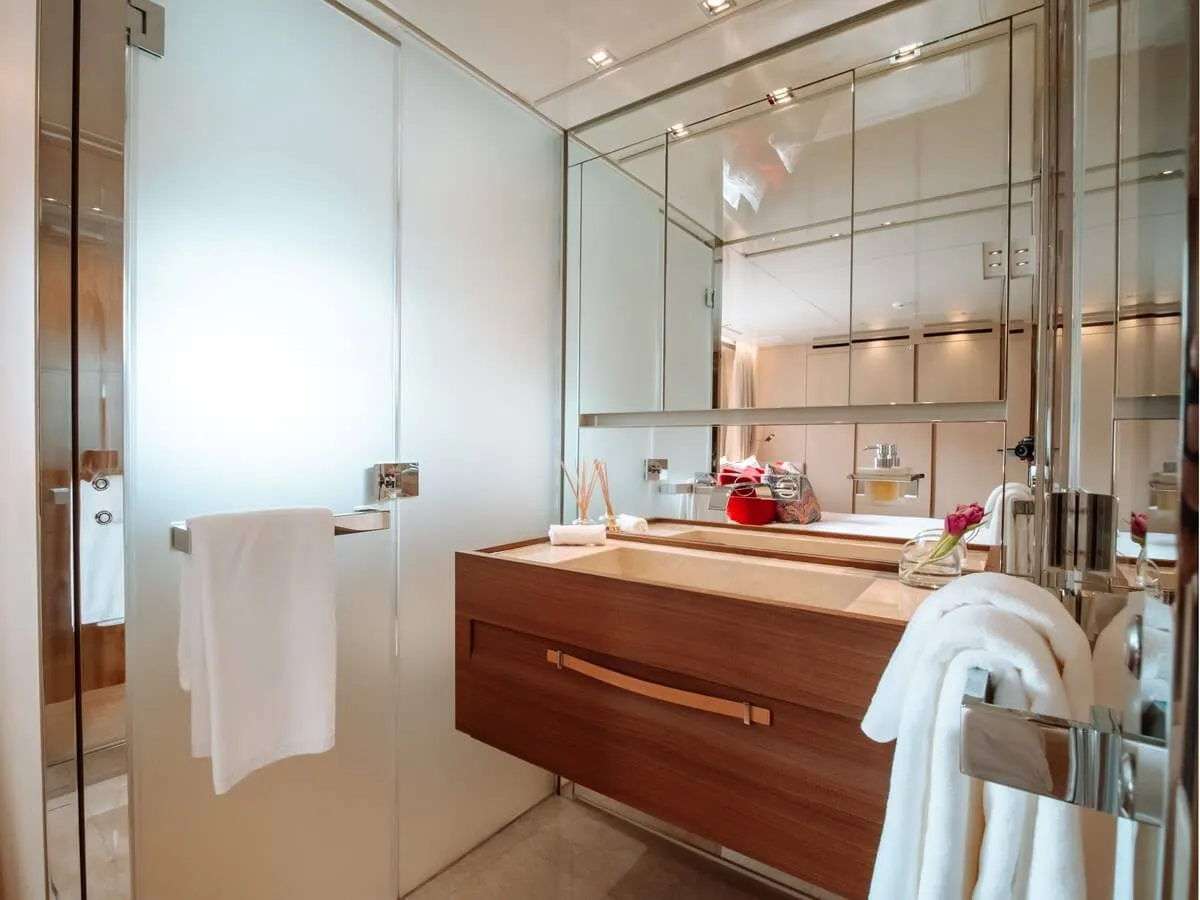 Whatever your activities on your charter, you'll find some impressive features are seamlessly integrated to help you, particularly the underwater lights, adding spectacle and style after dark. With Wi-Fi connectivity you don't have to lose contact with the outside world, unless you want to and guests will experience complete comfort while chartering thanks to air conditioning.