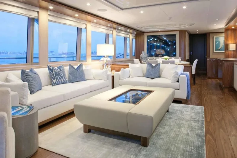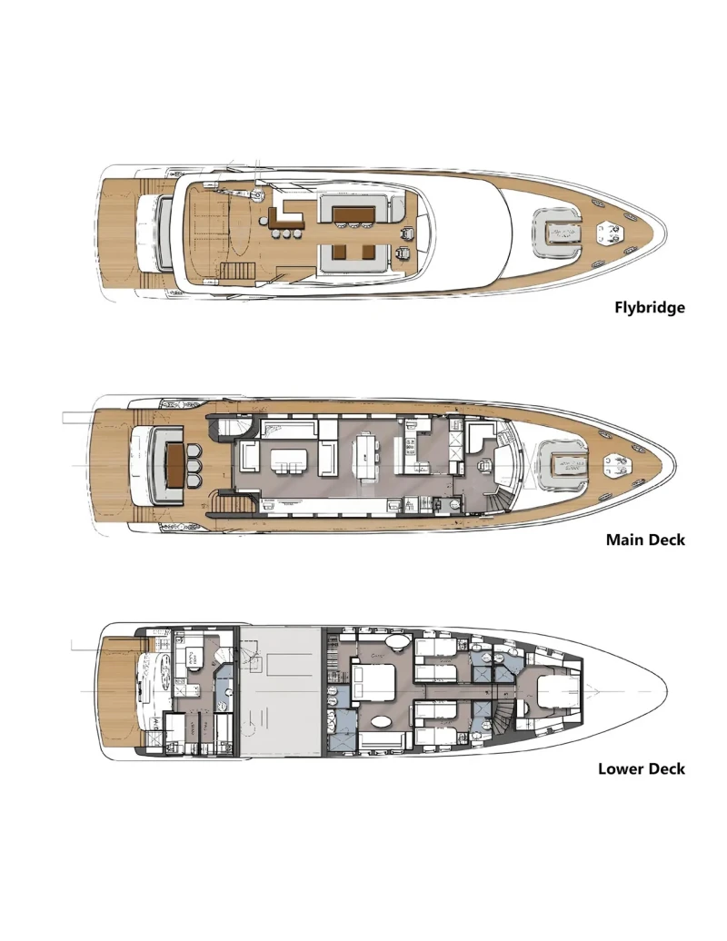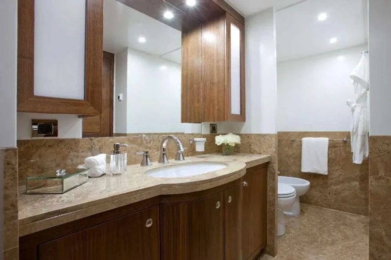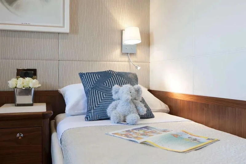 Firefly offers guest accommodation for up to 8 guests in 4 suites comprising a master suite, one double cabin and two cabins that can operate as twins or doubles. The supremely spacious full beam master suite incorporates its own study and dressing room. There are 6 beds in total, including 1 king, 1 queen and 4 singles. She is also capable of carrying up to 4 crew onboard to ensure a relaxed luxury yacht charter experience.