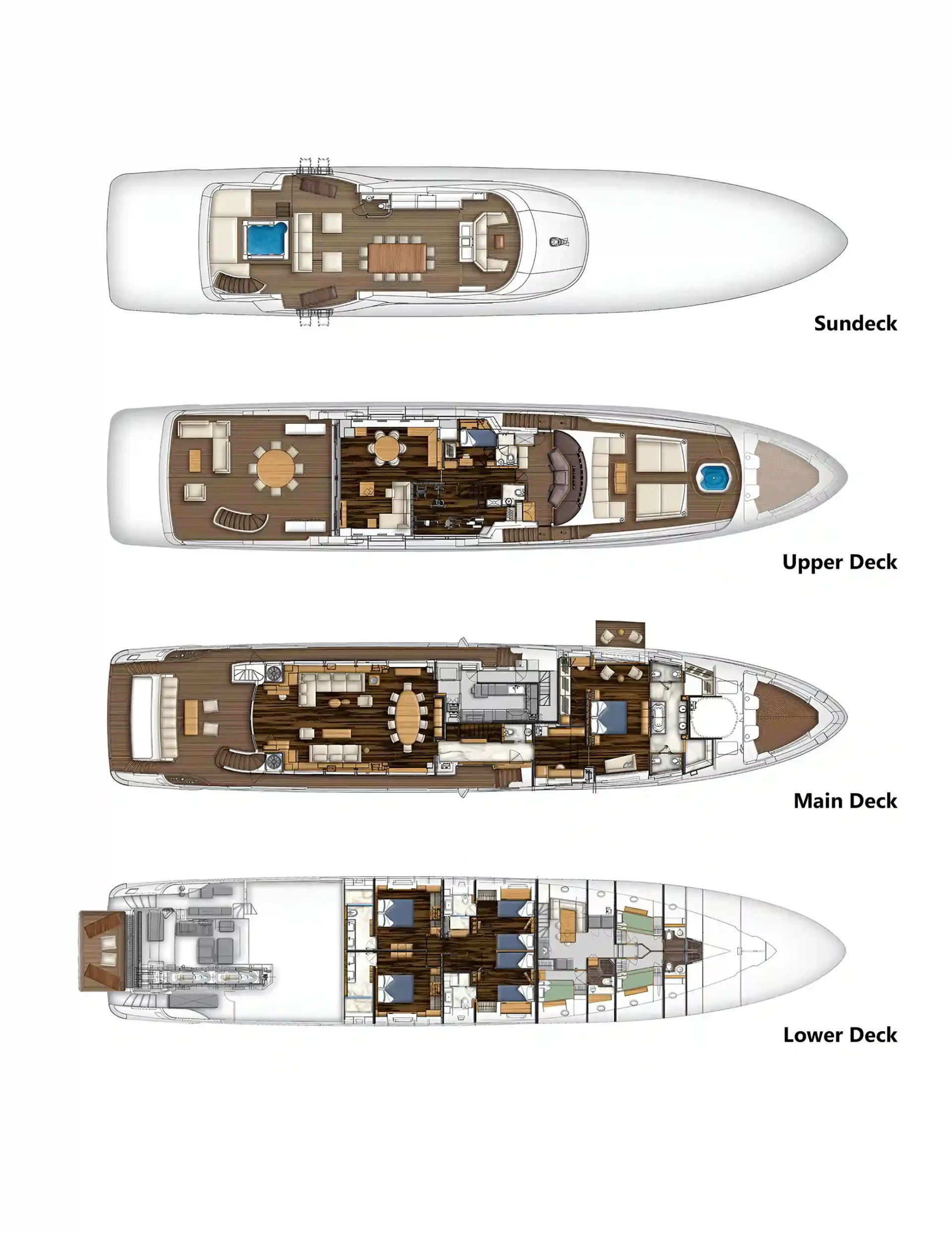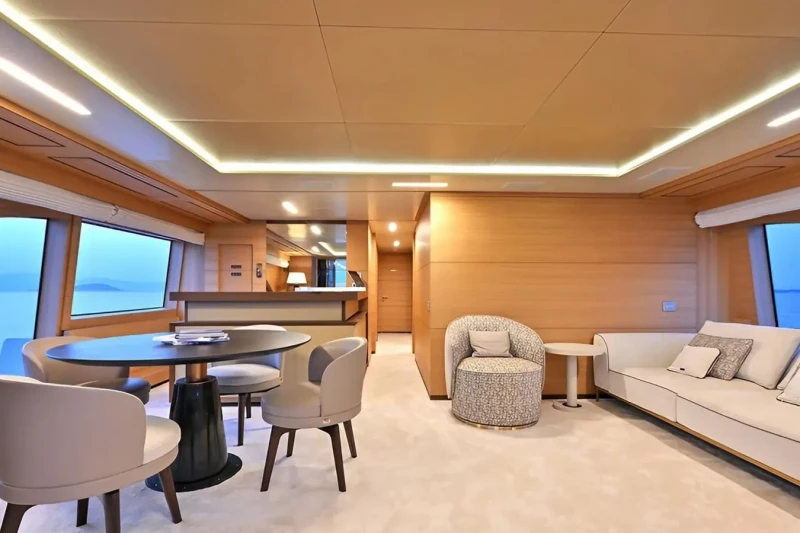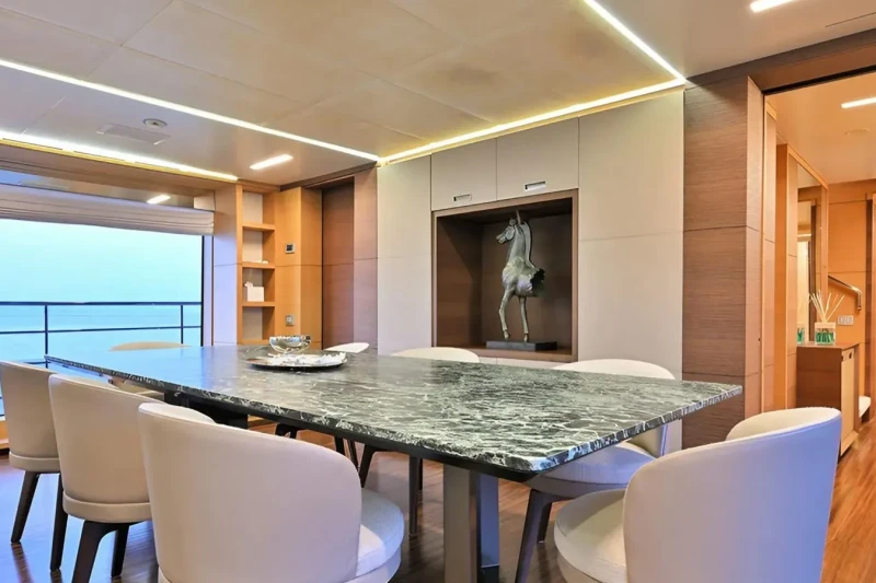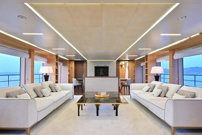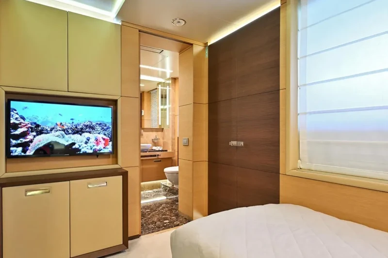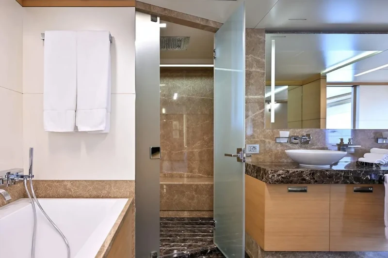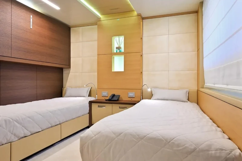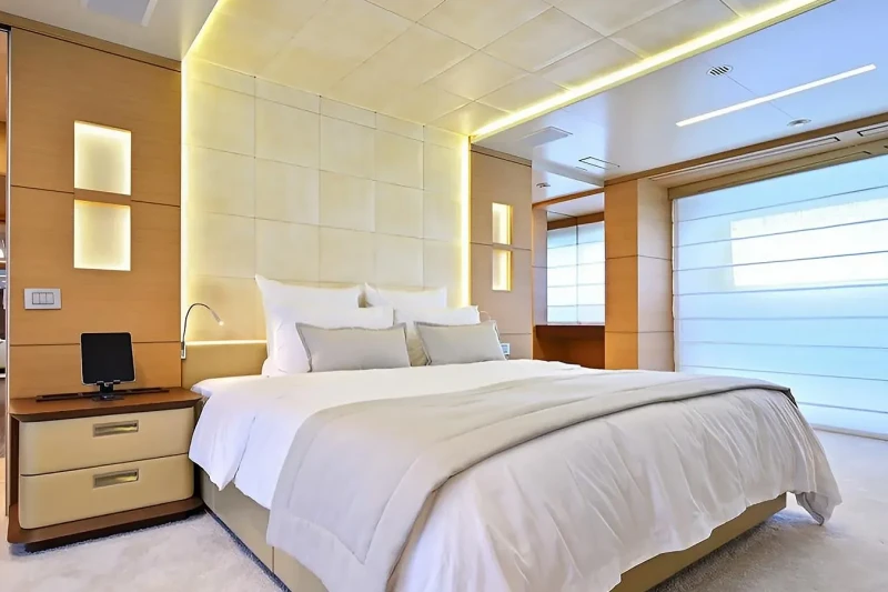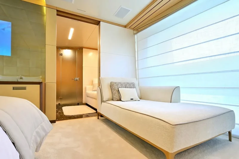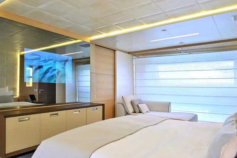 Free Day has been designed to comfortably accommodate up to 12 guests in 6 suites comprising one VIP cabin and one cabin that can operate as twin or double. She is also capable of carrying up to 7 crew onboard to ensure a relaxed luxury yacht experience.