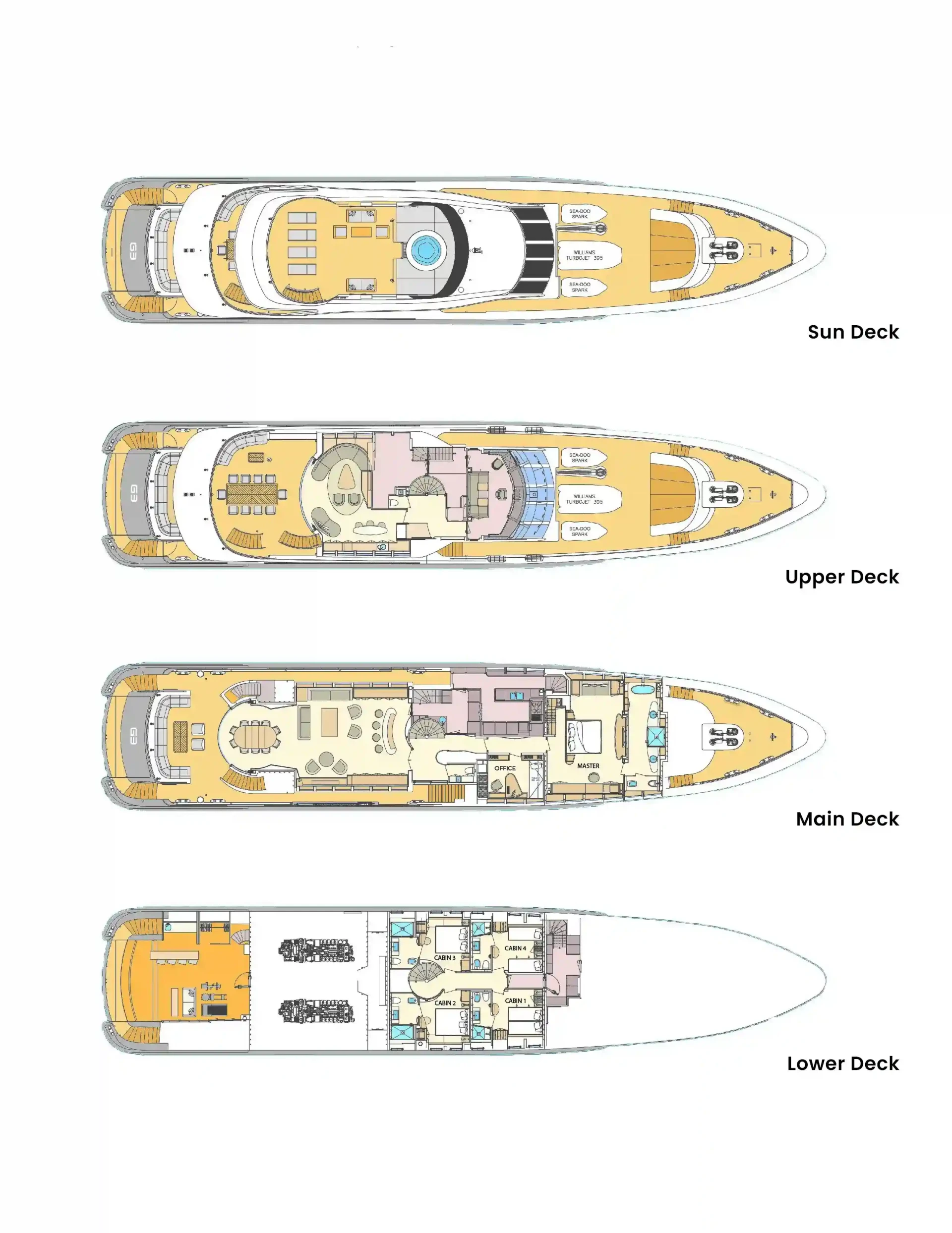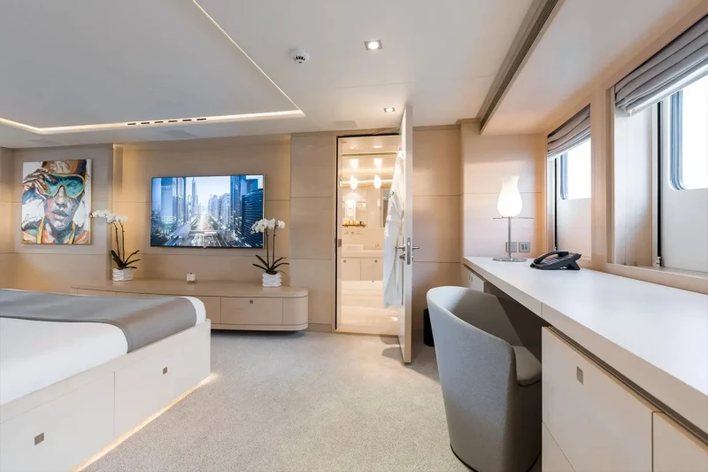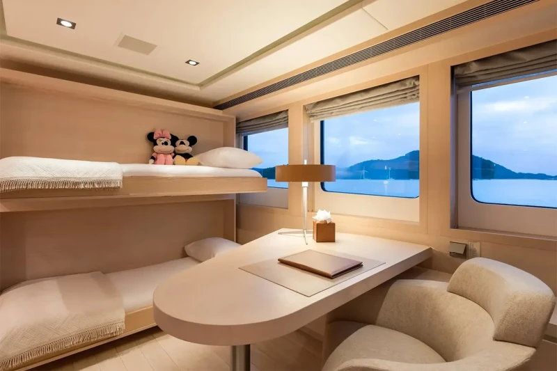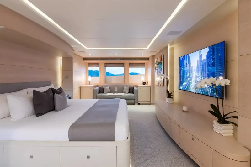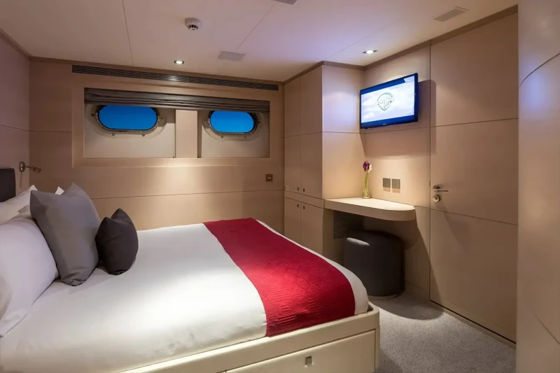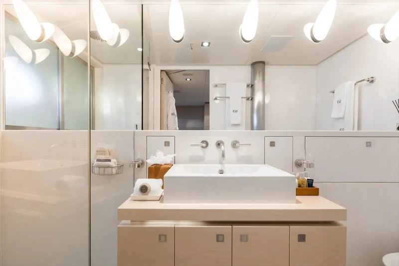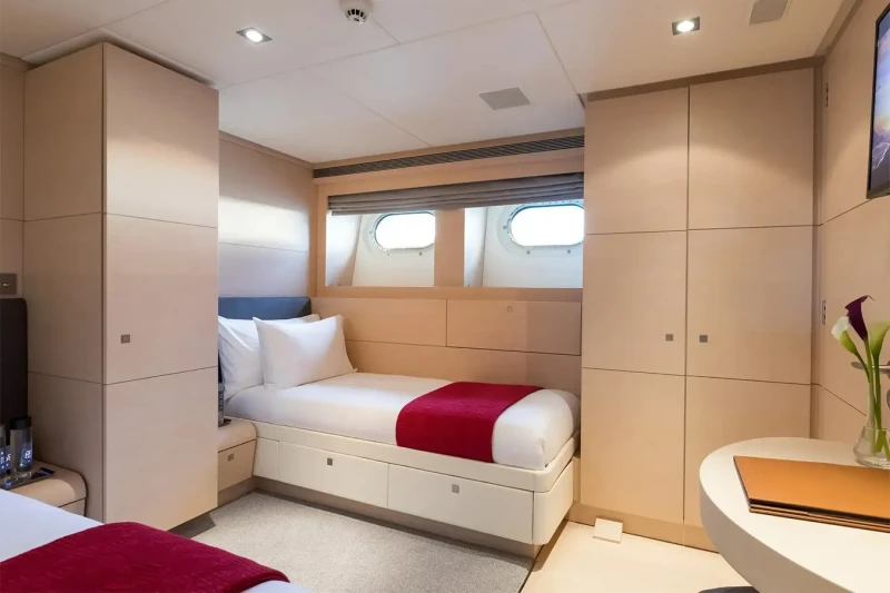 Families will particularly love G3 thanks to her child-friendly setup. Built in 2008, She offers guest accommodation for up to 12 guests with a layout comprising a master suite, one VIP cabin, one double cabin and two cabins that can operate as twins or doubles. There are 11 beds in total, including 1 king, 3 doubles and 2 pullmans. She is also capable of carrying up to 9 crew onboard to ensure a relaxed luxury yacht charter experience.