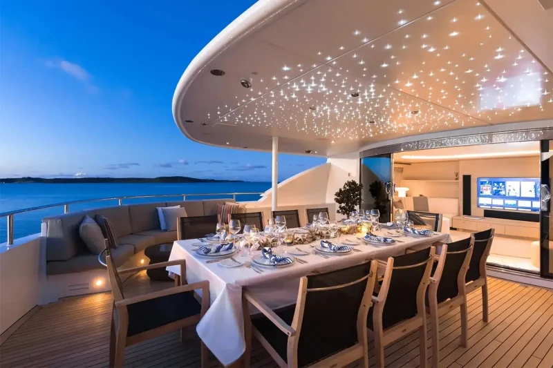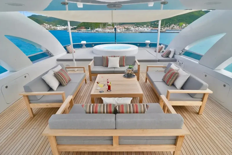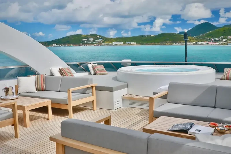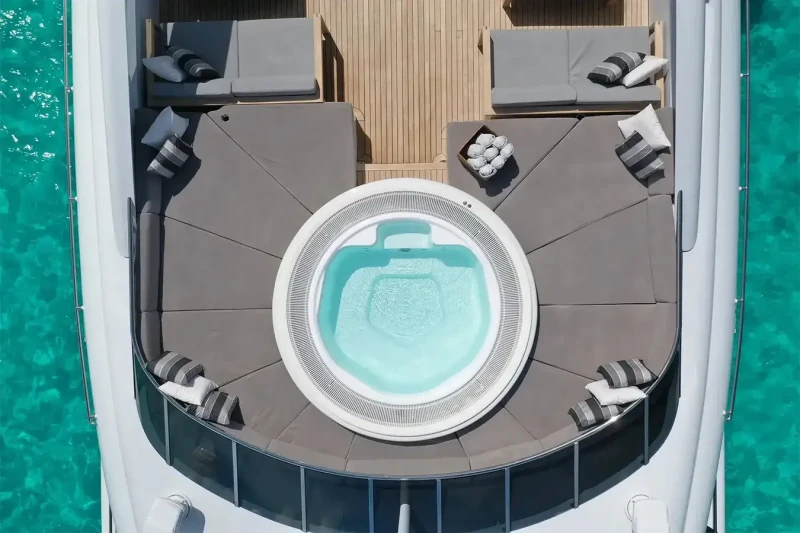 A charter on G3 is comfortable and convenient thanks to the provided amenities, particularly a beach club for you to relax on the edge of the water. Sit back with a glass of champagne in the deck jacuzzi.