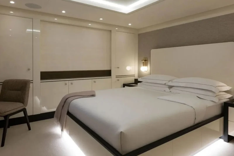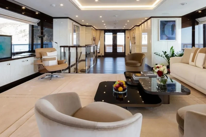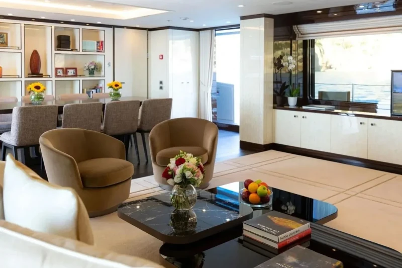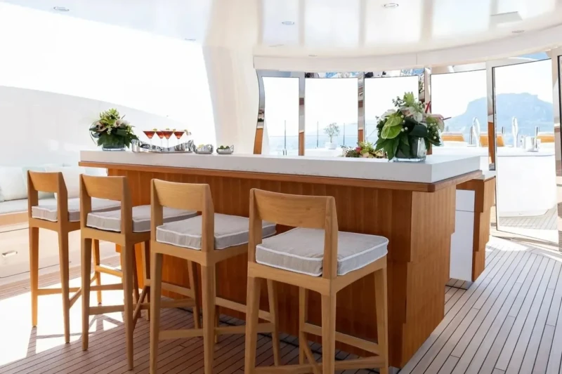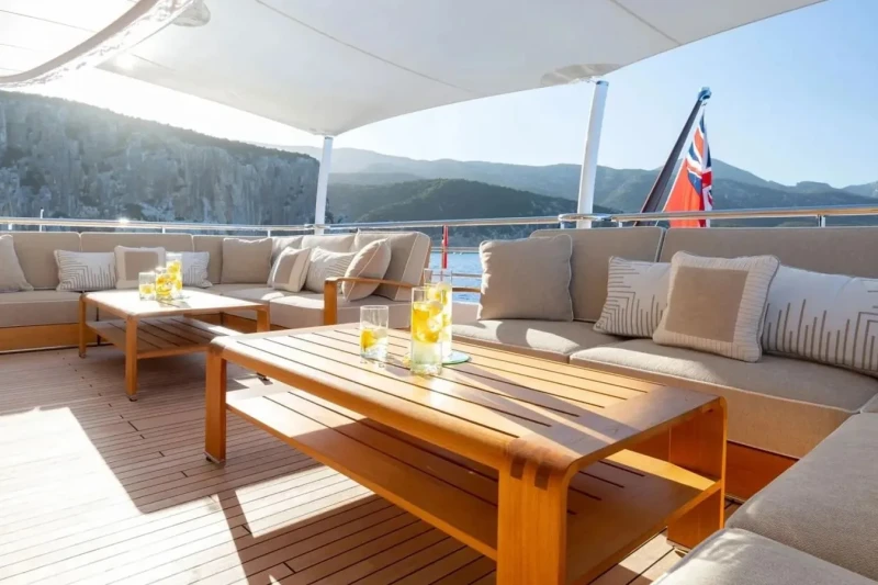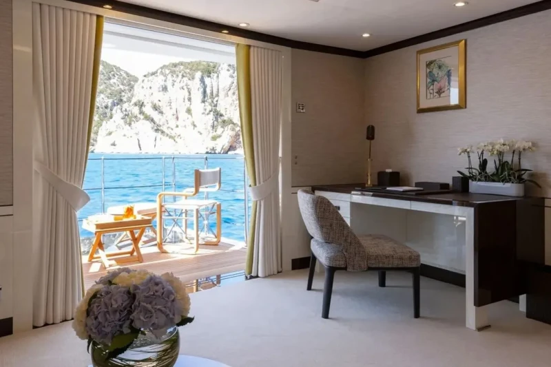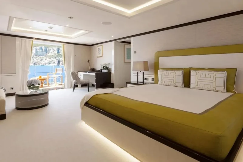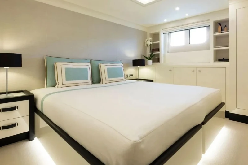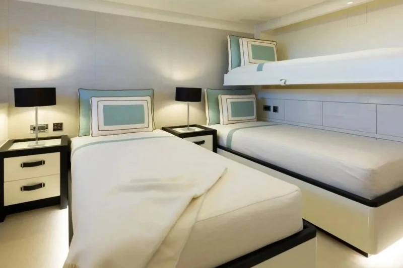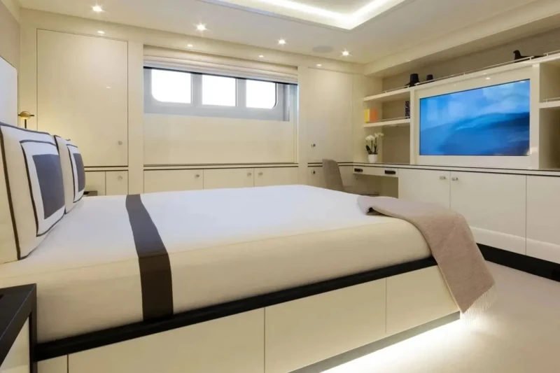 Galene is great for families thanks to her child-friendly setup. Built in 2020, She offers guest accommodation for up to 12 guests with a layout comprising a master suite located on the main deck, one VIP cabin, one double cabin and two twin cabins. There are 9 beds in total, including 1 king, 2 queen, 4 singles and 2 pullmans. She is also capable of carrying up to 13 crew onboard to ensure a relaxed luxury yacht charter experience.