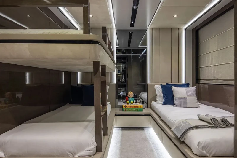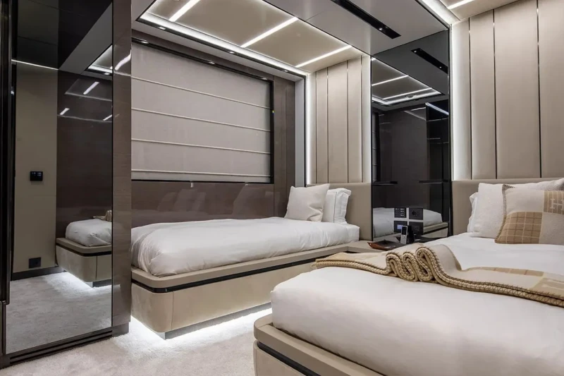Gisa has been designed to comfortably accommodate up to 10 guests in 5 suites. She is also capable of carrying up to 9 crew onboard to ensure a relaxed luxury yacht experience.