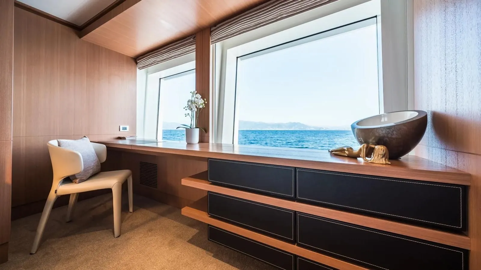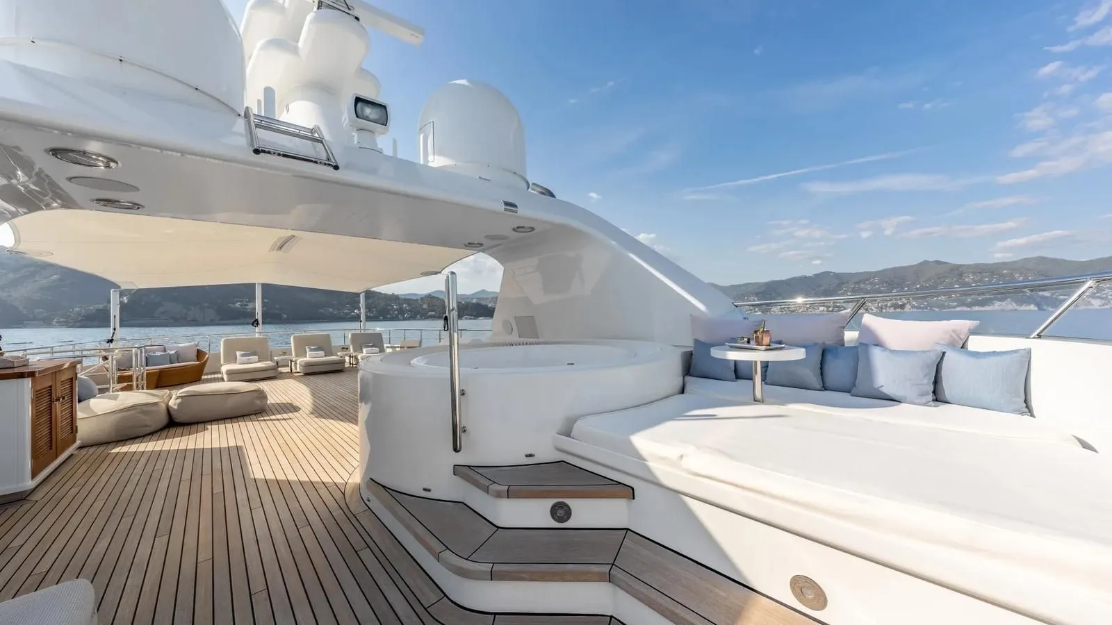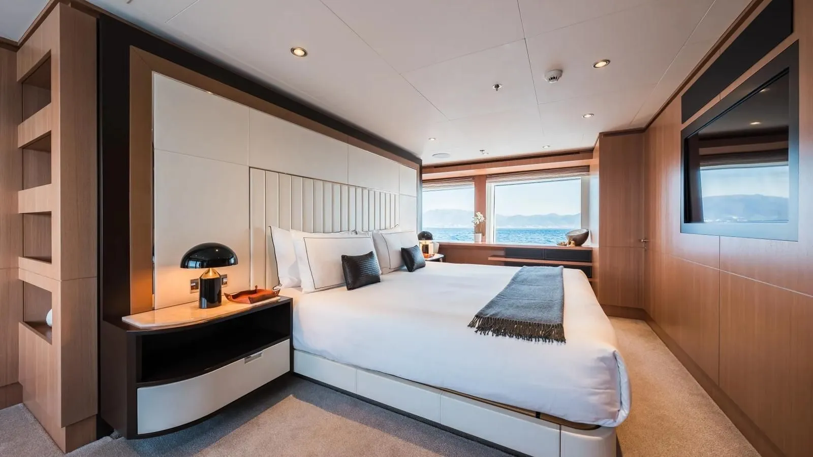 Built in 2010, GO offers guest accommodation for up to 10 guests in 5 suites comprising a master suite, two double cabins and two twin cabins. There are 7 beds in total, including 1 king, 2 queen, 4 singles and 2 convertible. She is also capable of carrying up to 9 crew onboard to ensure a relaxed luxury yacht charter experience.