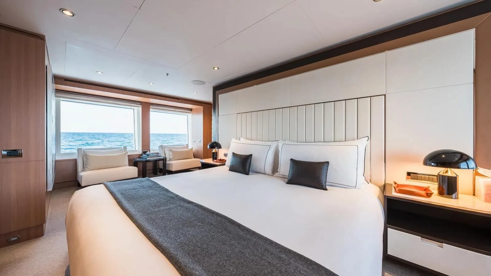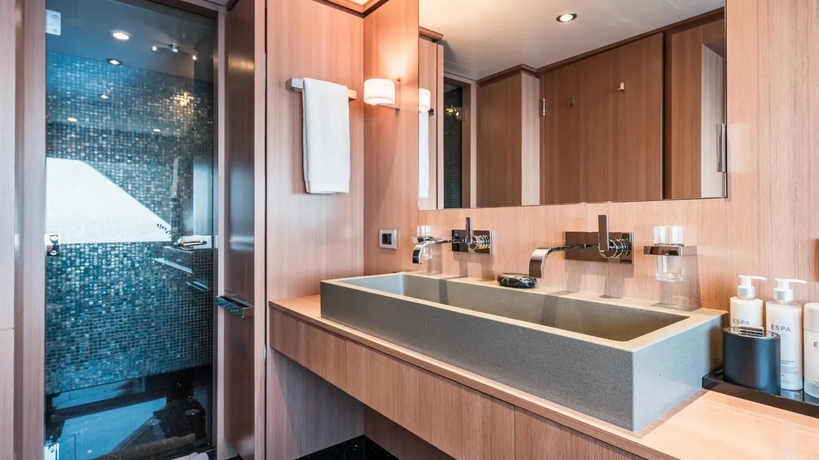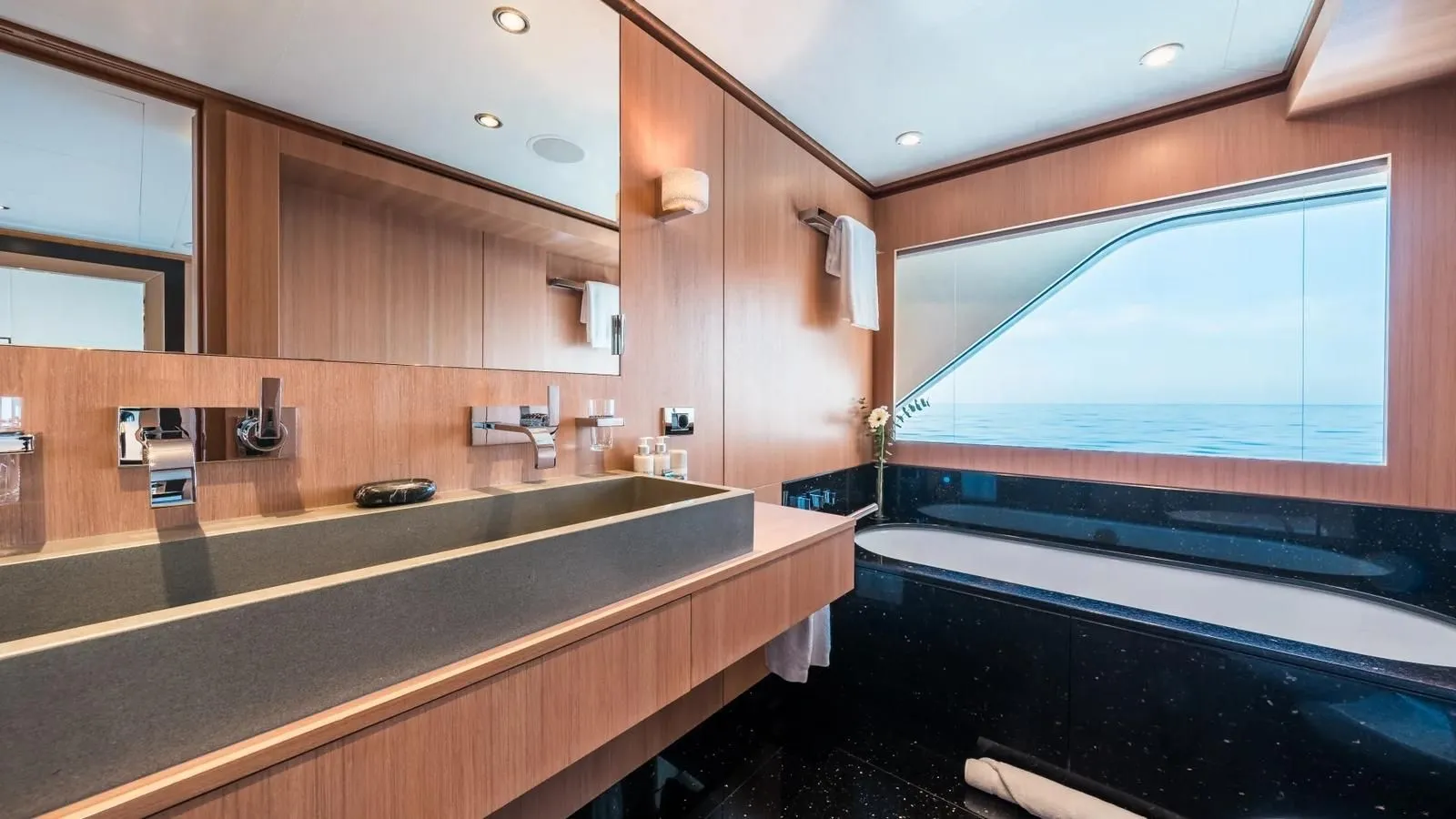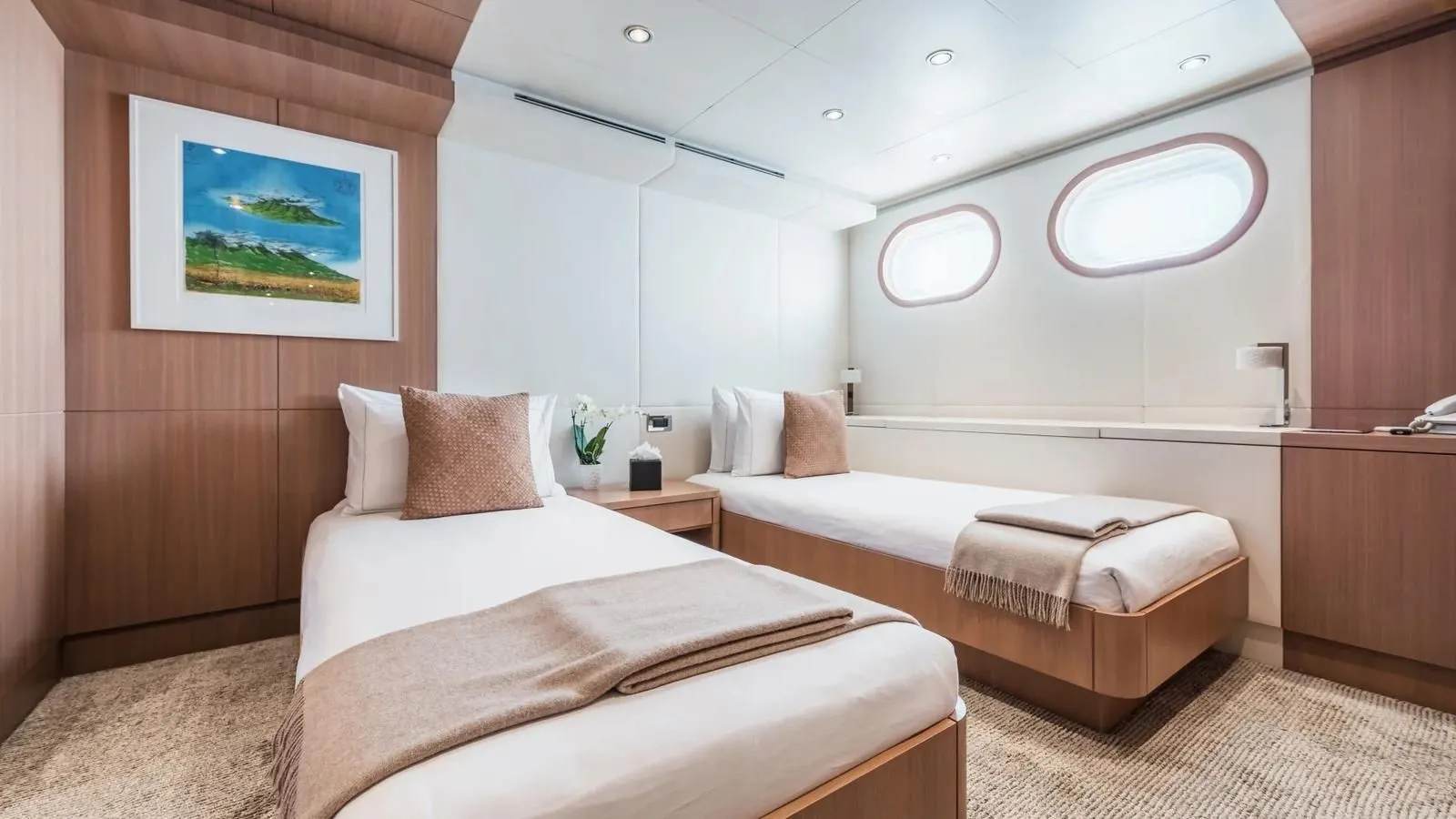 Built in 2010, GO offers guest accommodation for up to 10 guests in 5 suites comprising a master suite, two double cabins and two twin cabins. There are 7 beds in total, including 1 king, 2 queen, 4 singles and 2 convertible. She is also capable of carrying up to 9 crew onboard to ensure a relaxed luxury yacht charter experience.