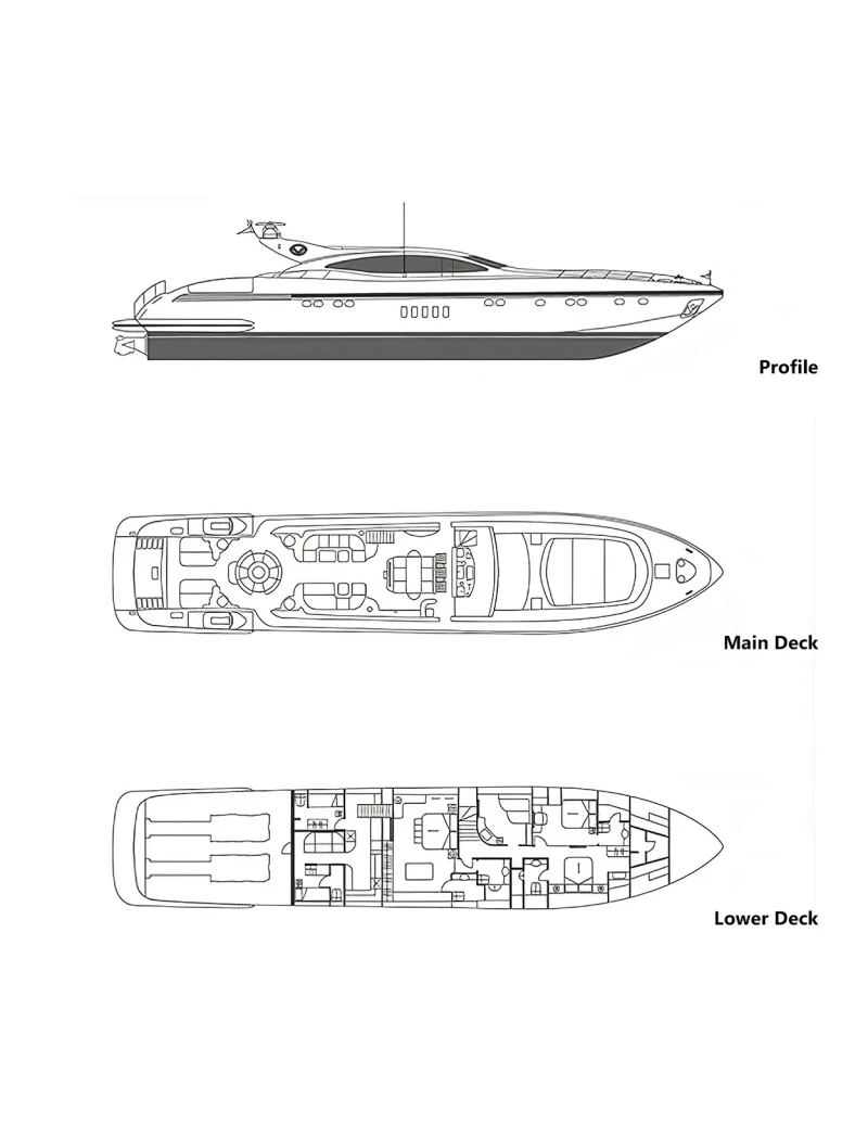 Graziadiu has been designed to comfortably accommodate up to 8 guests in 4 suites. She is also capable of carrying up to 4 crew onboard to ensure a relaxed luxury yacht experience.