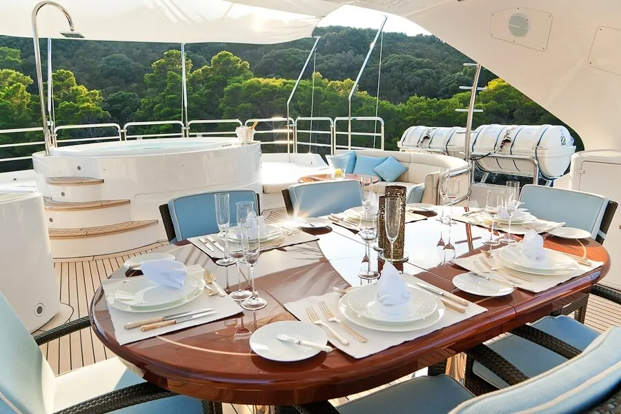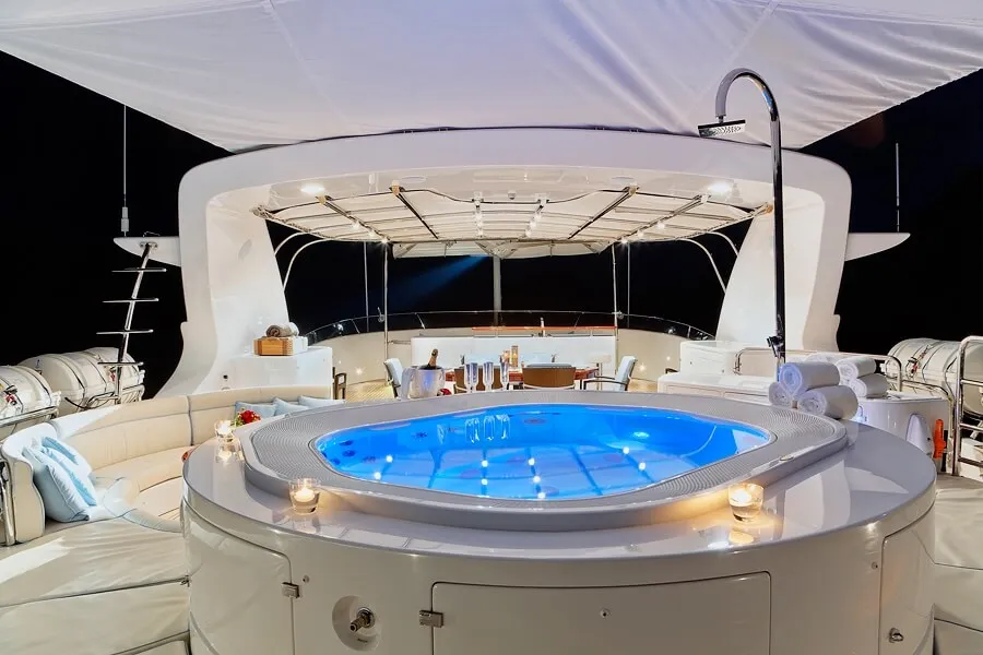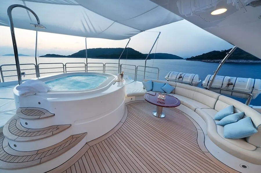 On your charter, you'll find plenty to keep you busy and entertained, notably a deck jacuzzi, perfect to enjoy the scenery with your favourite drink in hand.