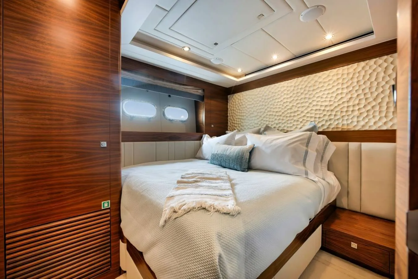 In the Zone has been designed to comfortably accommodate up to 8 guests in 3 suites. She is also capable of carrying up to 5 crew onboard to ensure a relaxed luxury yacht experience.
