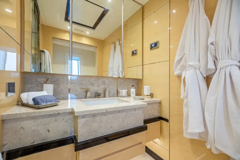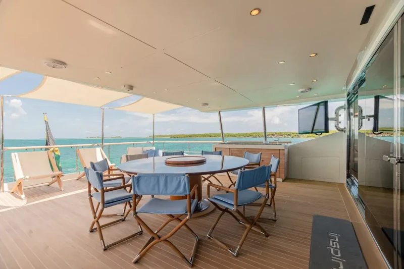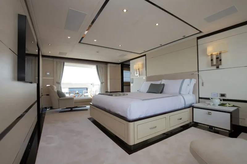 Families will particularly love Inspiration thanks to her child-friendly setup. She offers guest accommodation for up to 10 guests with a layout comprising a master suite, two VIP cabins, one double cabin and one twin cabin. There are 7 beds in total, including 1 king, 2 queen, 1 double, 2 singles and 1 pullman. She is also capable of carrying up to 7 crew onboard to ensure a relaxed luxury yacht charter experience.