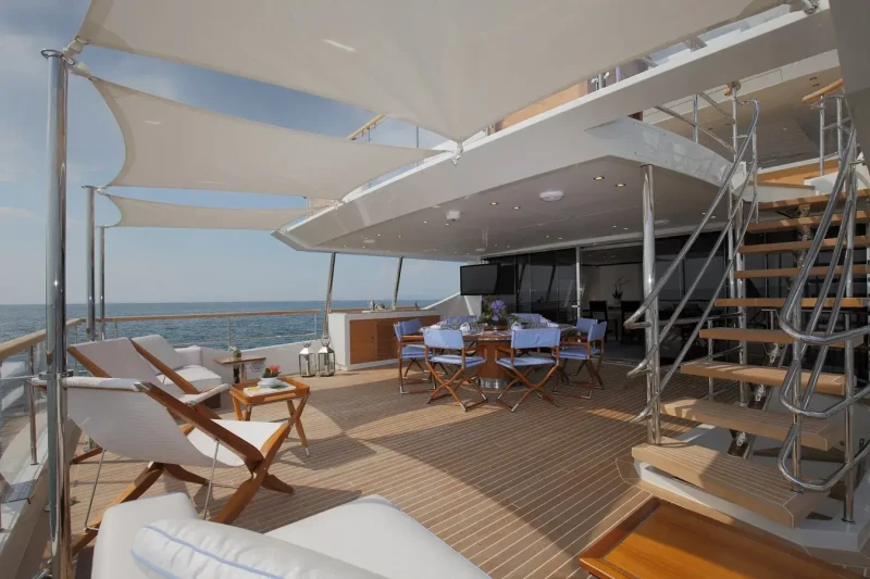 On your charter, you'll find plenty to keep you busy and entertained, particularly a beach club for you to relax on the edge of the water. Maintain your fitness routine and work out in the well-equipped gym and in addition sit back with a glass of champagne in the deck jacuzzi.