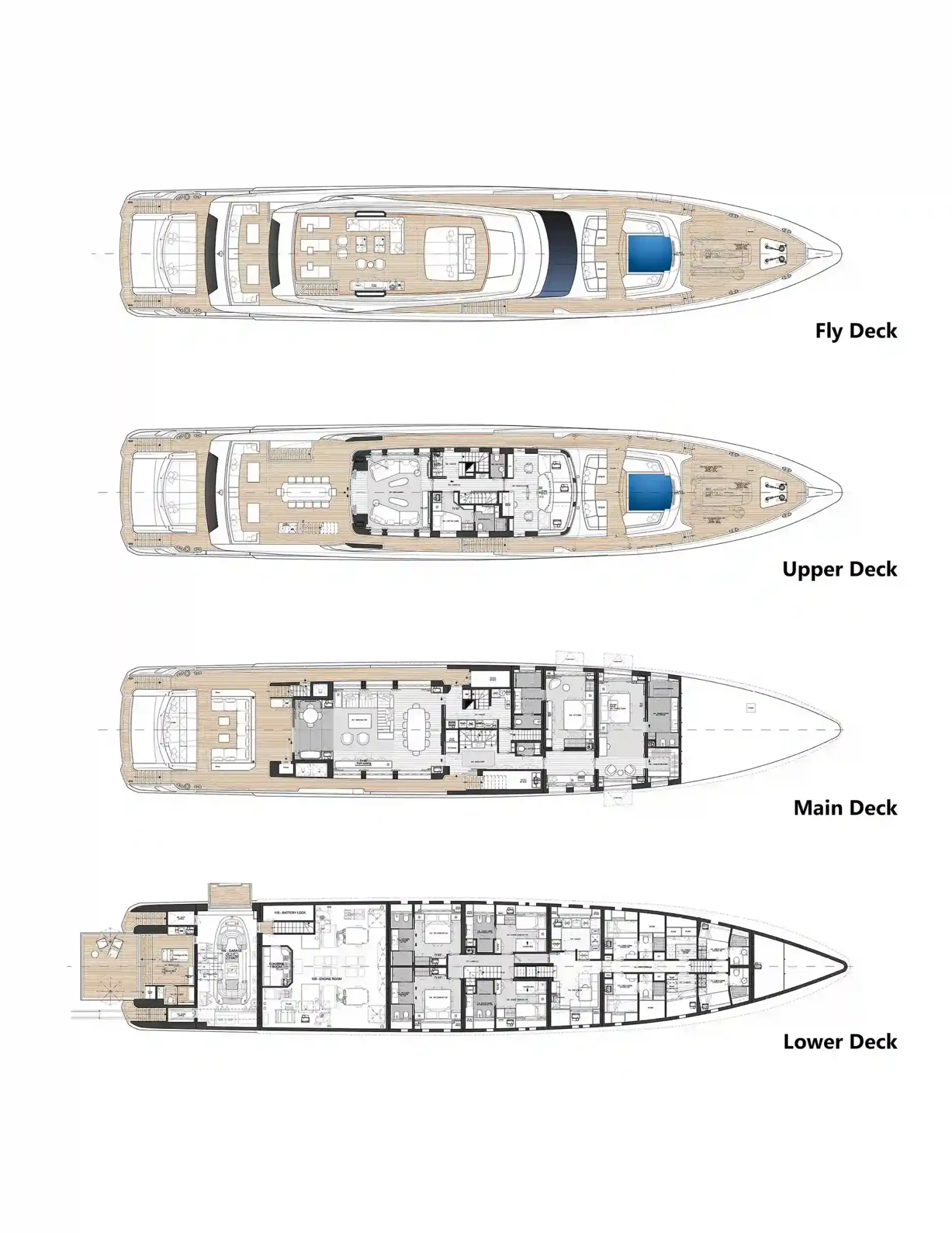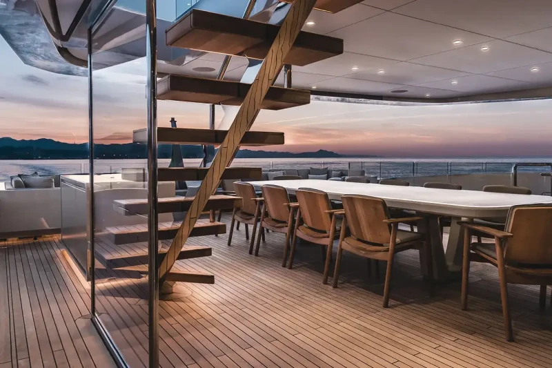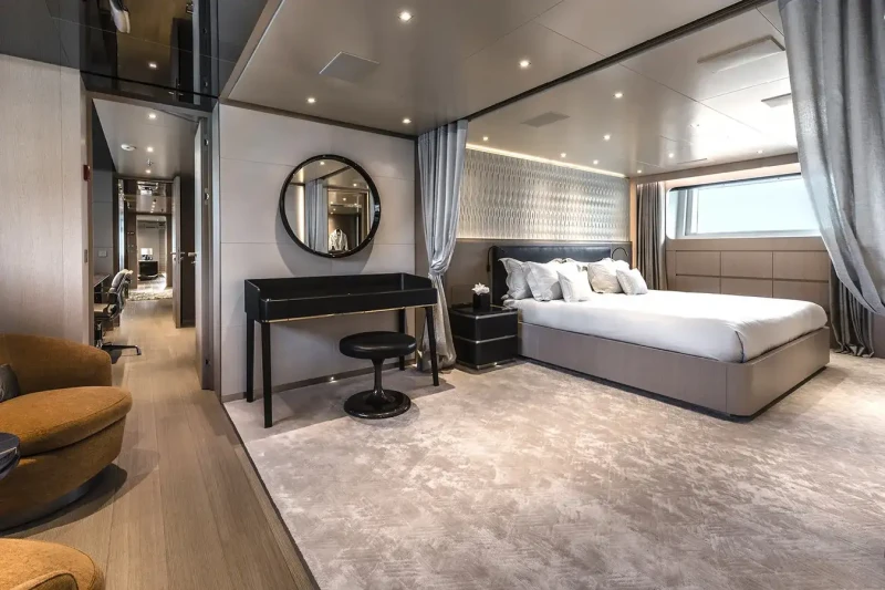 Kinda has been designed to comfortably accommodate up to 12 guests in 6 suites comprising one VIP cabin. She is also capable of carrying up to 9 crew onboard to ensure a relaxed luxury yacht experience.