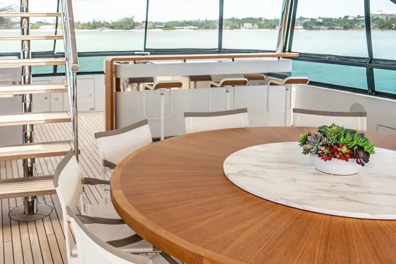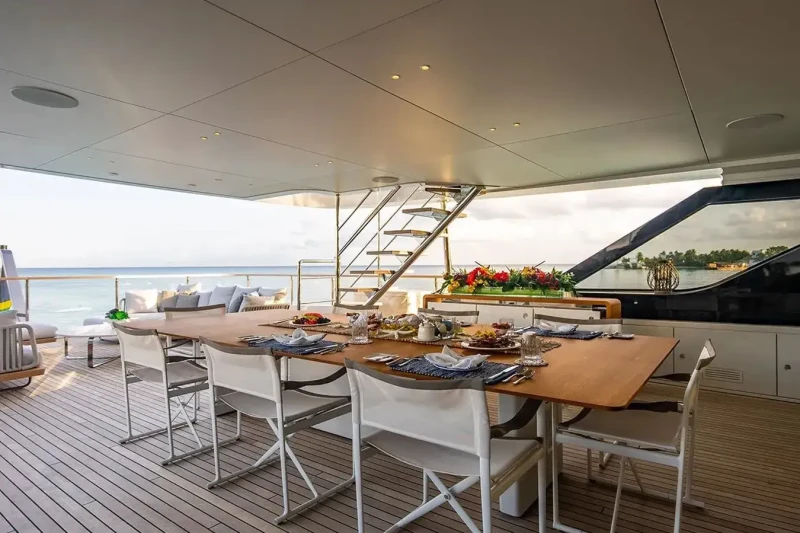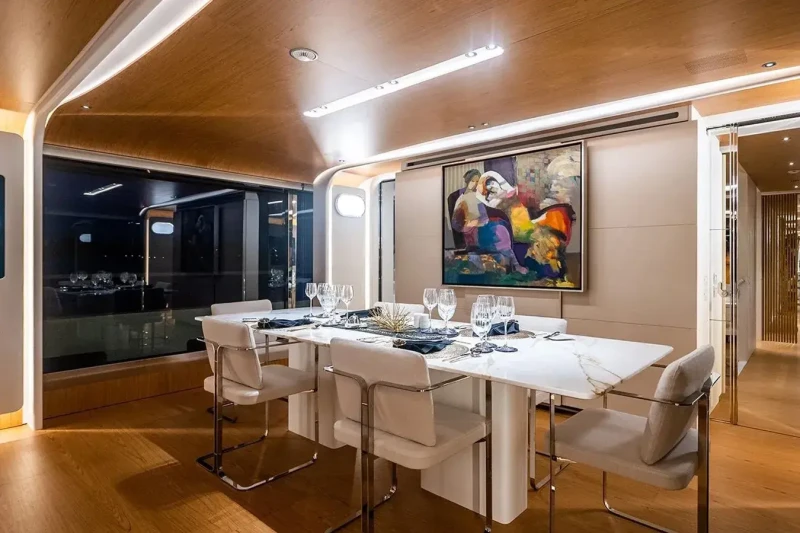 Built in 2022, Koju offers guest accommodation for up to 10 guests in 5 suites comprising a master suite located on the main deck, one VIP cabin, two double cabins and one cabin that can operate as twin or double. She is also capable of carrying up to 8 crew onboard to ensure a relaxed luxury yacht charter experience.