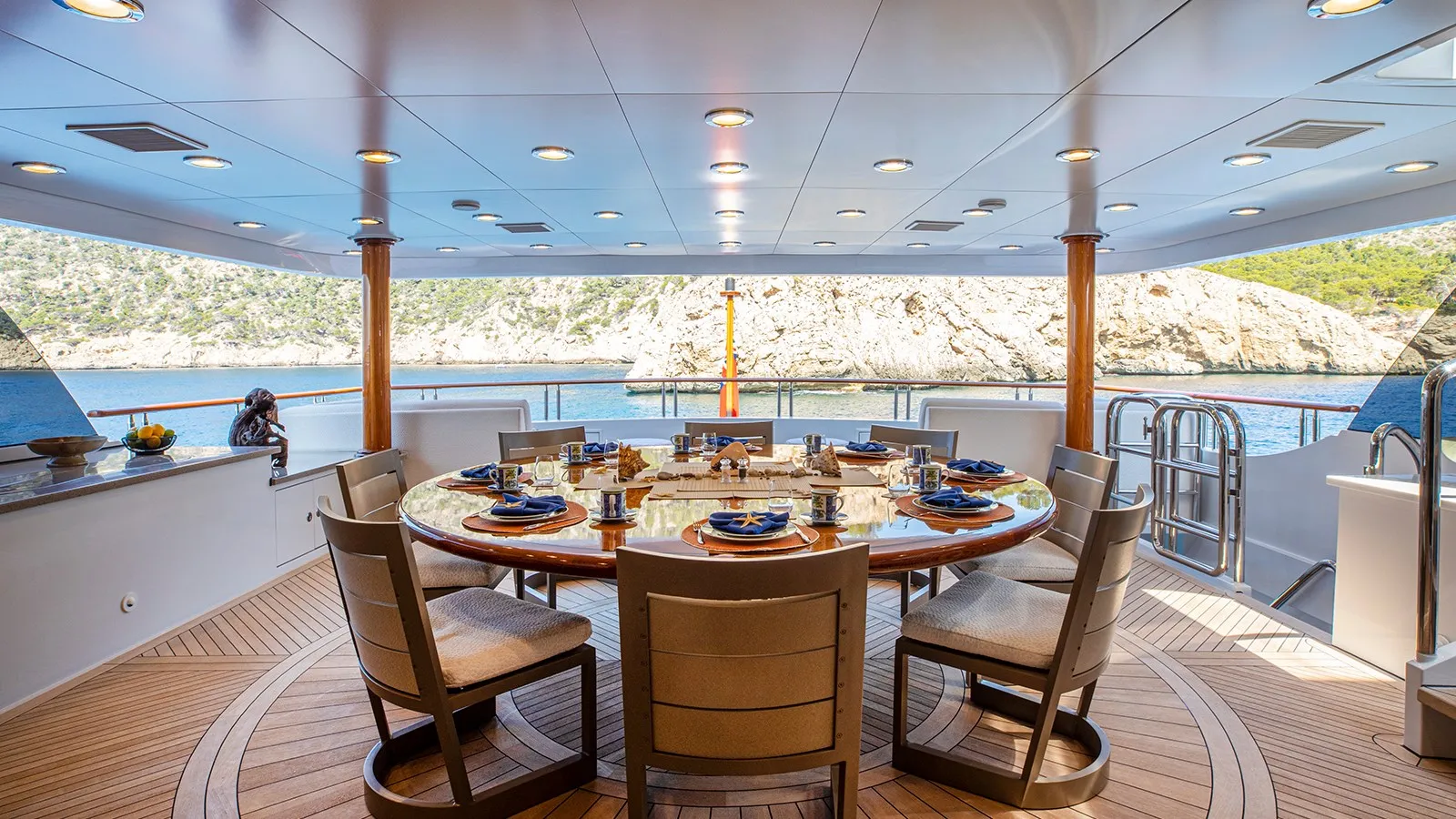 A charter on La Dea II is comfortable and convenient thanks to the provided amenities, notably a gym with all the latest equipment to maintain your fitness routine. Soak up the bubbles in style in the deck jacuzzi.