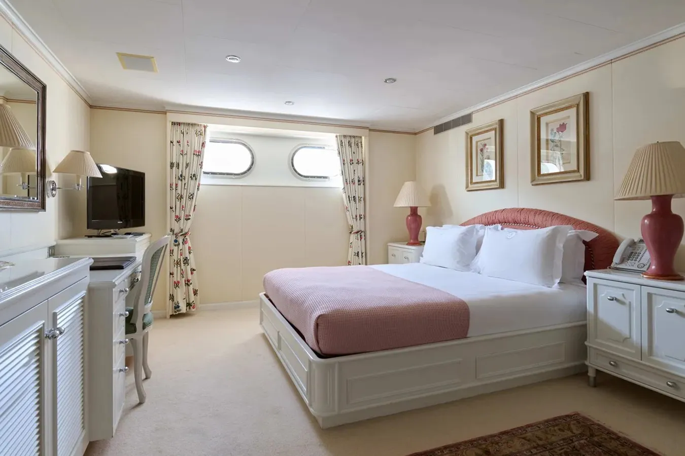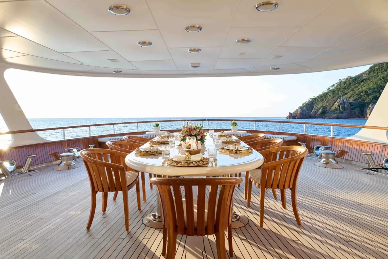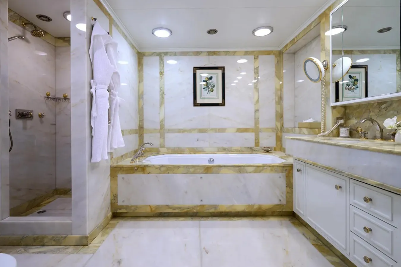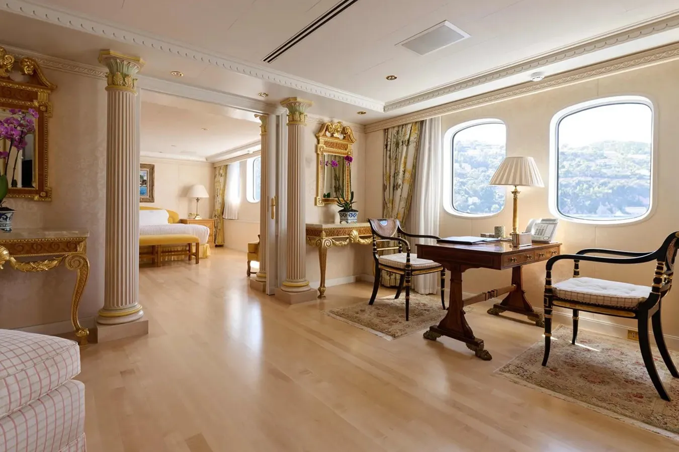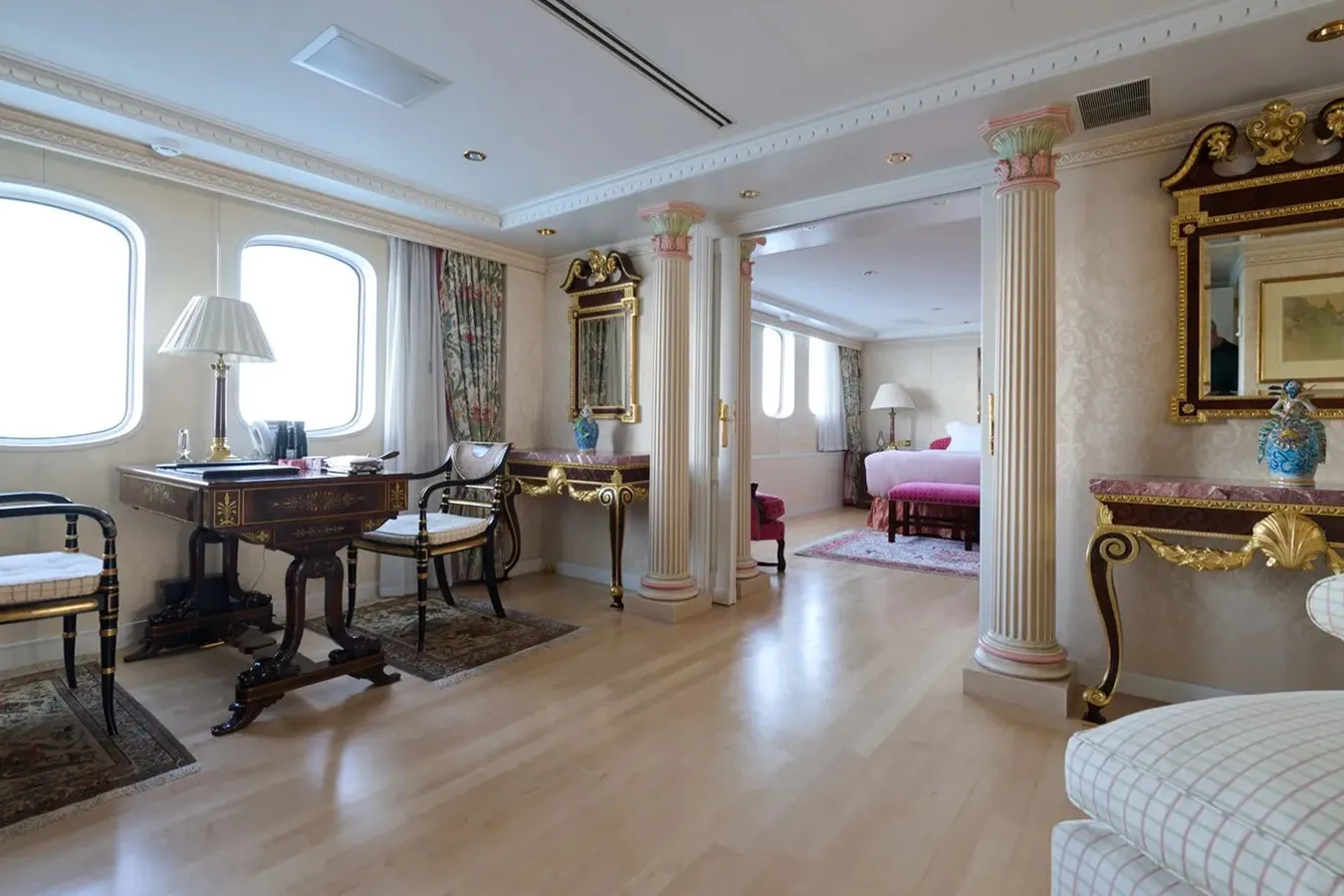 Lady Beatrice has been designed to comfortably accommodate up to 16 guests in 8 suites comprising one VIP cabin. The master suite incorporates its own study and dressing room. She is also capable of carrying up to 17 crew onboard to ensure a relaxed luxury yacht experience.