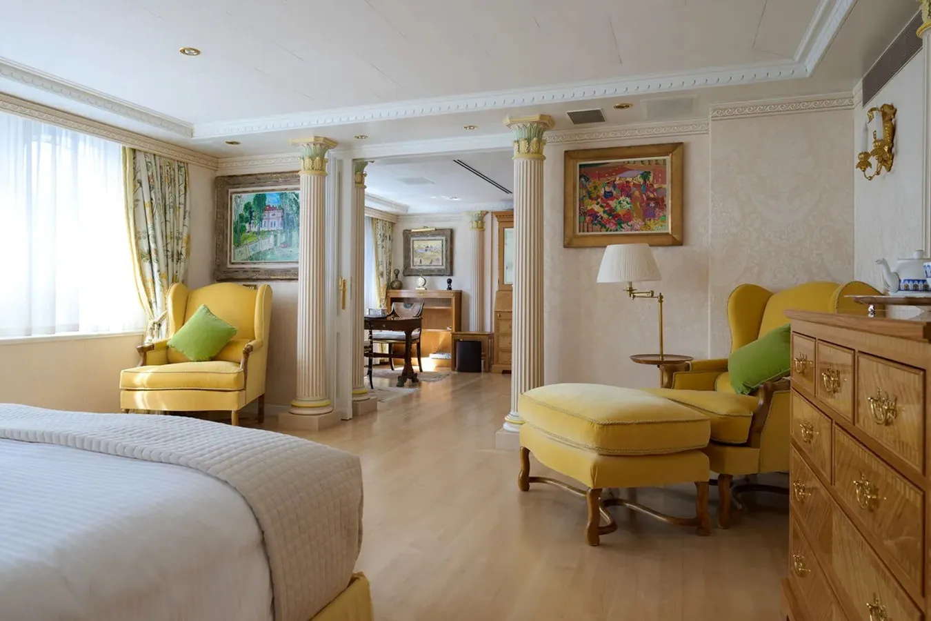 Her features include piano, beauty salon, WiFi and air conditioning.
